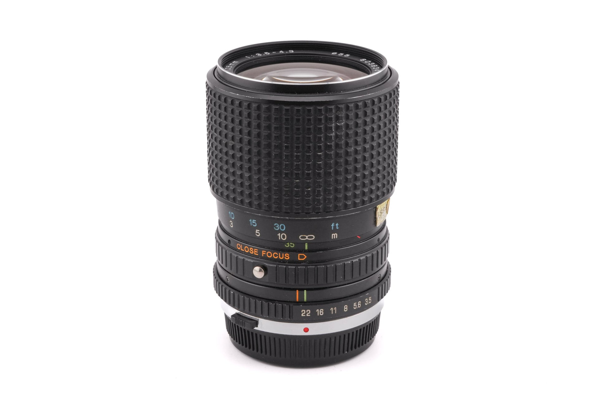 Manual focus wide-to-telephoto push/pull zoom lens made for OM-mount 35mm SLR cameras introduced by Tokina. The lens features a Close Focus mode that goes to 1:4 magnification. Metal body available in black.