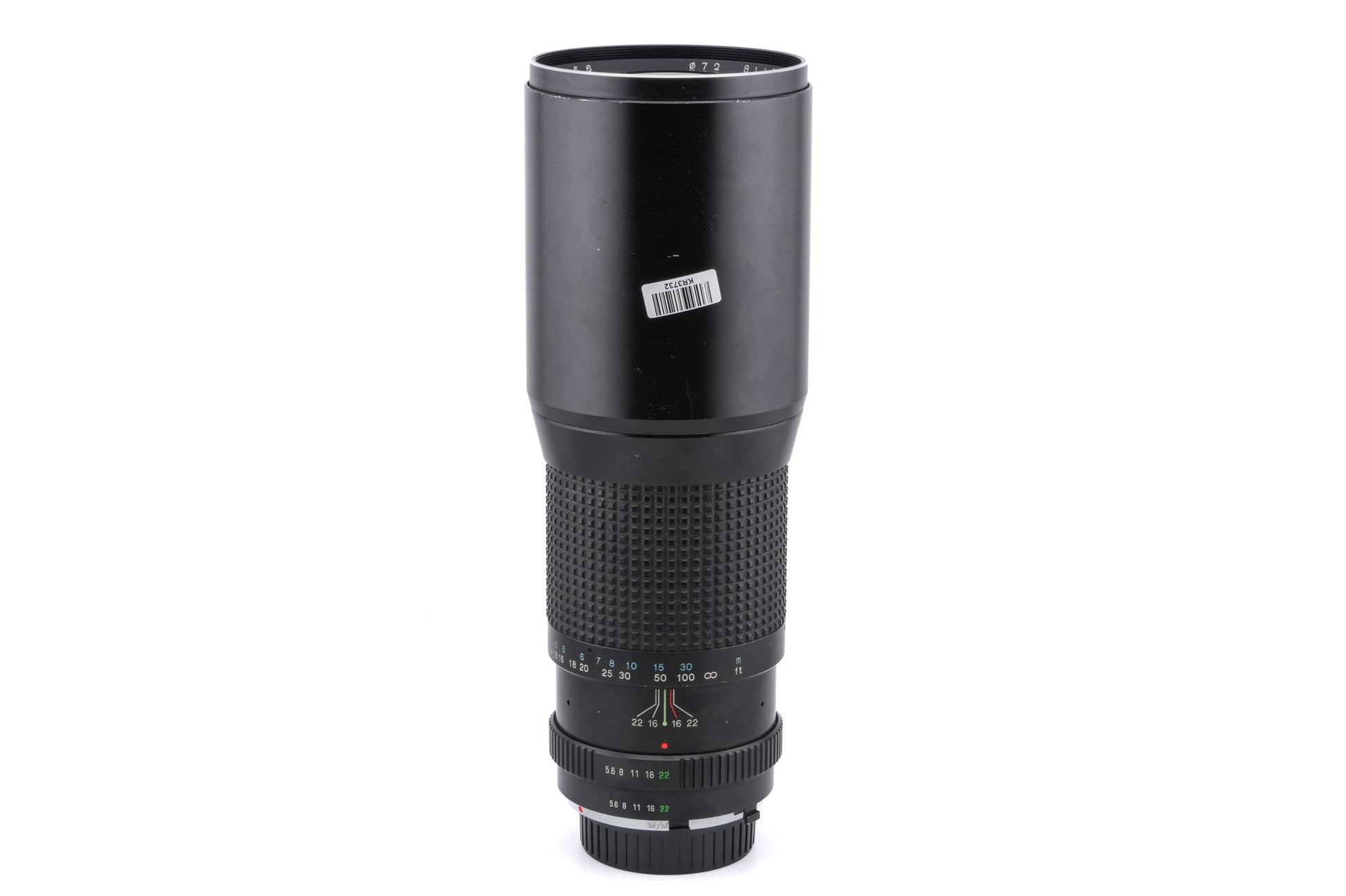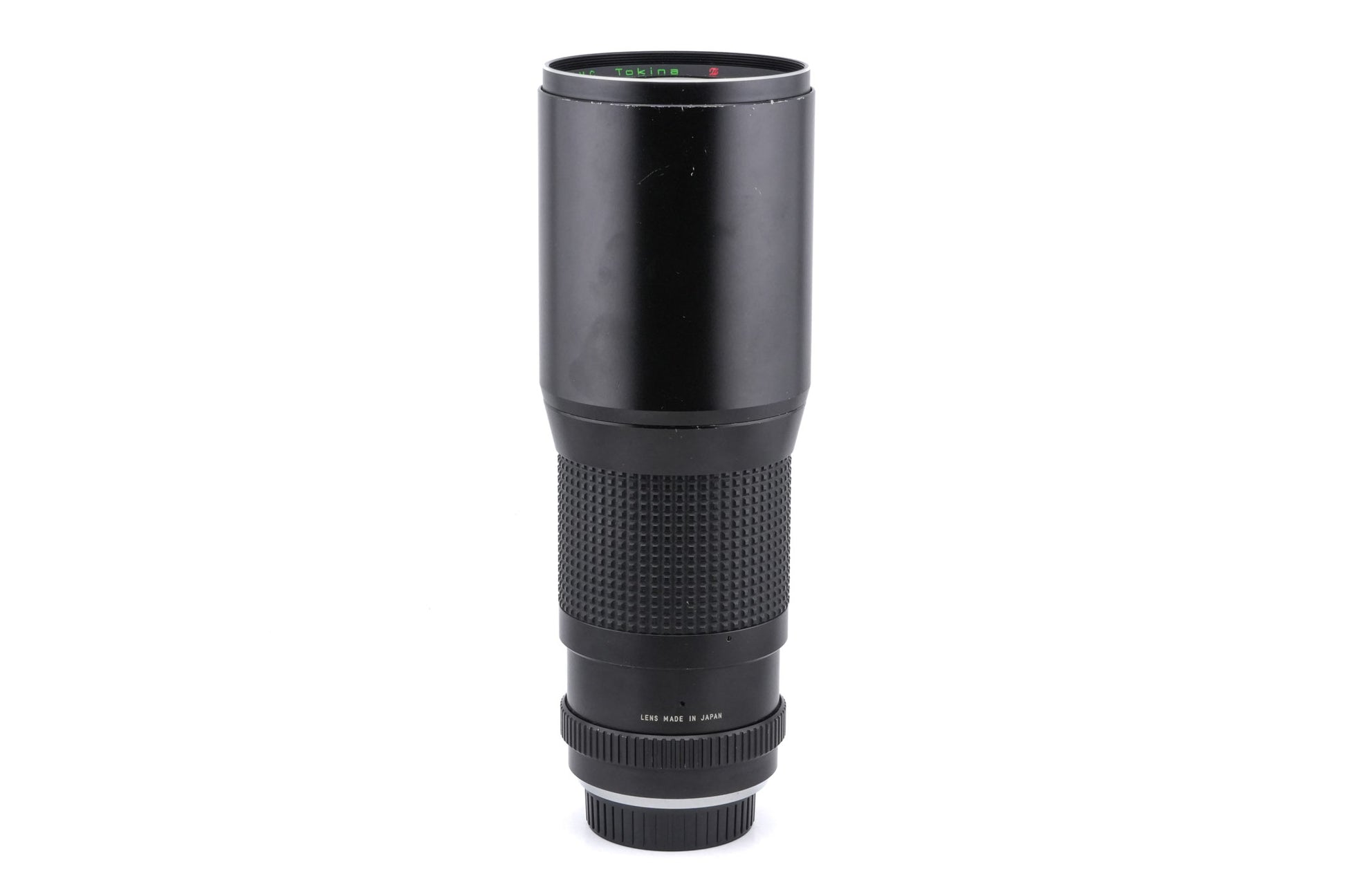 Manual focus telephoto lens made for MD-mount 35mm SLR cameras introduced by Tokina. It has a built-in lens hood. Metal body available in black.