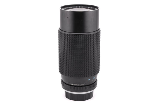 Manual focus telephoto zoom lens made for MD-mount 35mm SLR cameras introduced by Tokina. It uses a one-touch, push/pull zoom mechanism and was also sold by Vivitar under their Series 1 line. Metal body available in black.