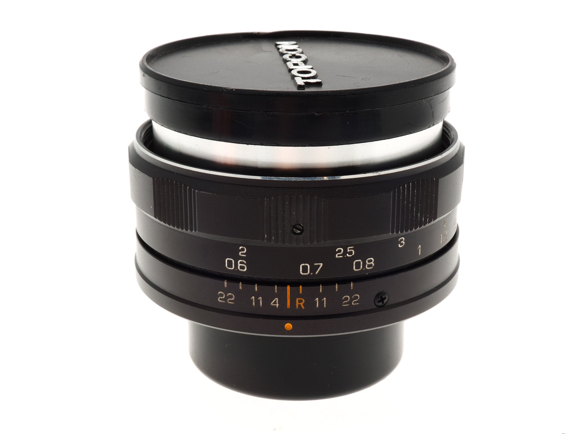 Manual focus normal lens for UV-mount SLR cameras made by Topcon. Metal construction available in black.