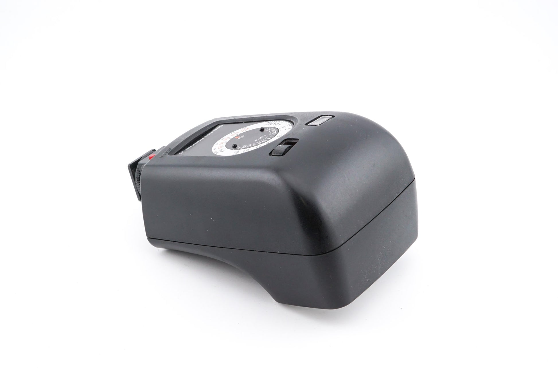 Single-pin flash made by Toshiba. Mounts onto the hotshoe of the camera. Plastic body available in black.