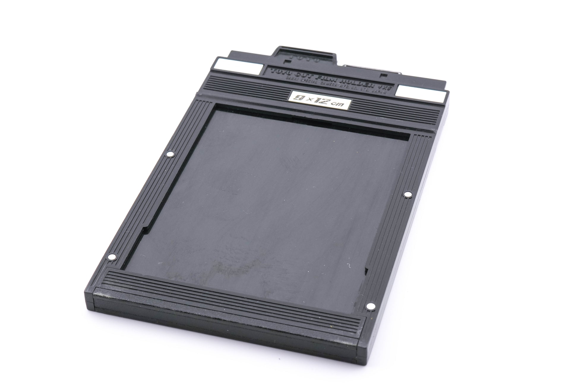 9x12cm sheet film holder made by Toyo. Each holder can hold two sheets of film, one on each side. Plastic body available in black.
