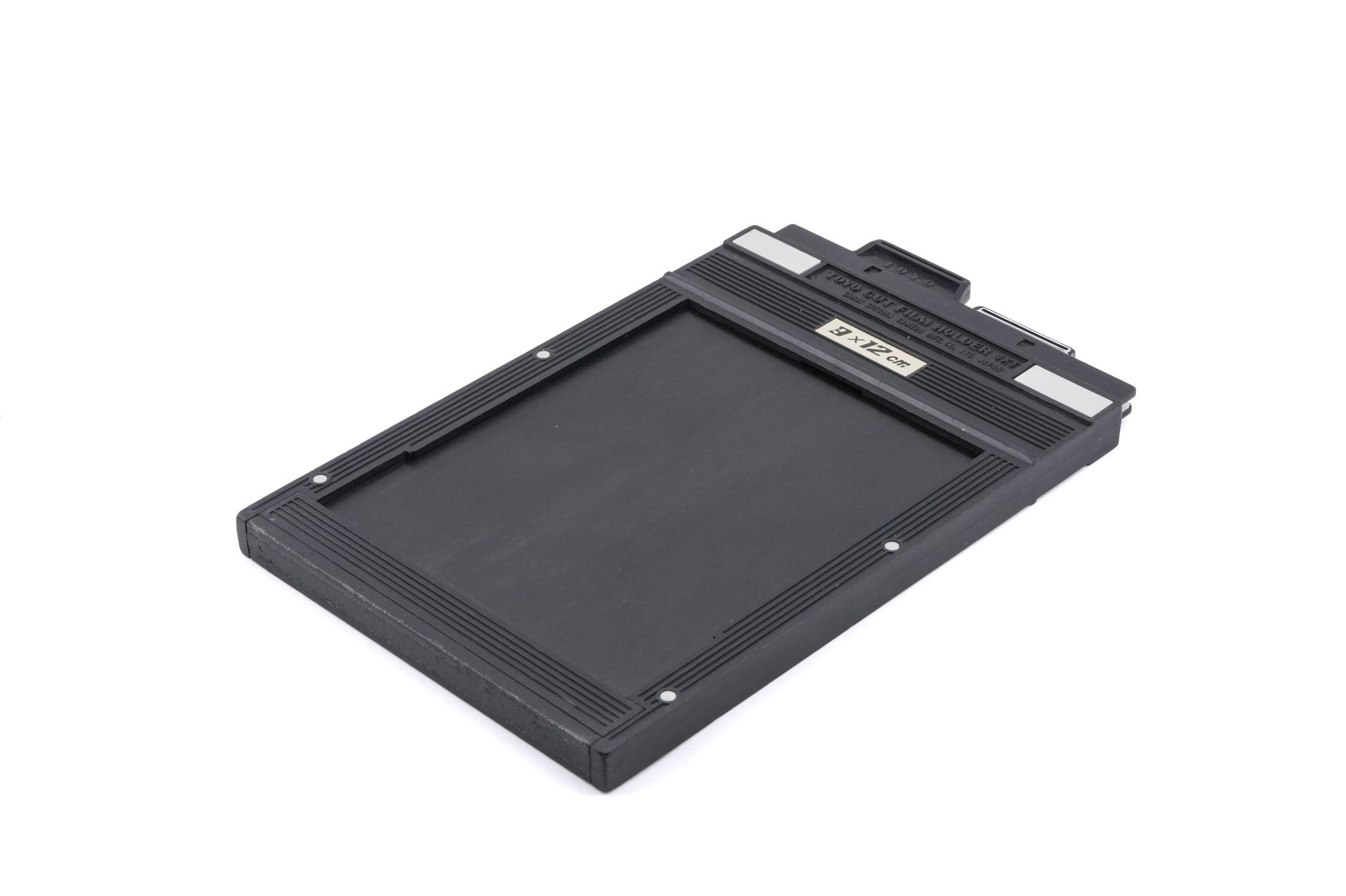9x12cm sheet film holder made by Toyo. Each holder can hold two sheets of film, one on each side. Plastic body available in black.