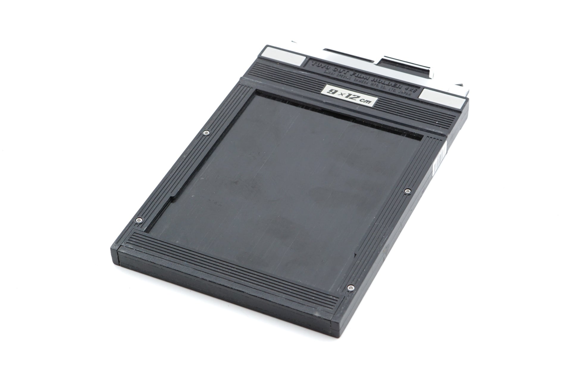 9x12cm sheet film holder made by Toyo. Each holder can hold two sheets of film, one on each side. Plastic body available in black.