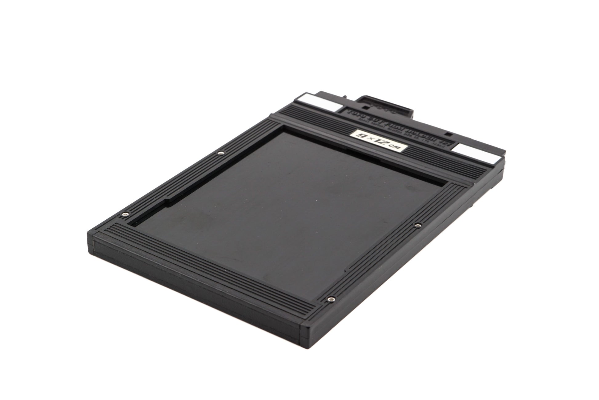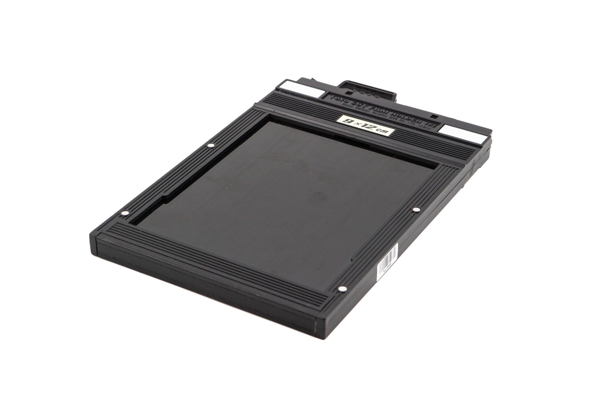 9x12cm sheet film holder made by Toyo. Each holder can hold two sheets of film, one on each side. Plastic body available in black.