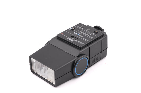 Automatic TTL flash made for Nikon F cameras introduced by Vivitar. It has 2 A modes and full manual exposure. Plastic body available in black.