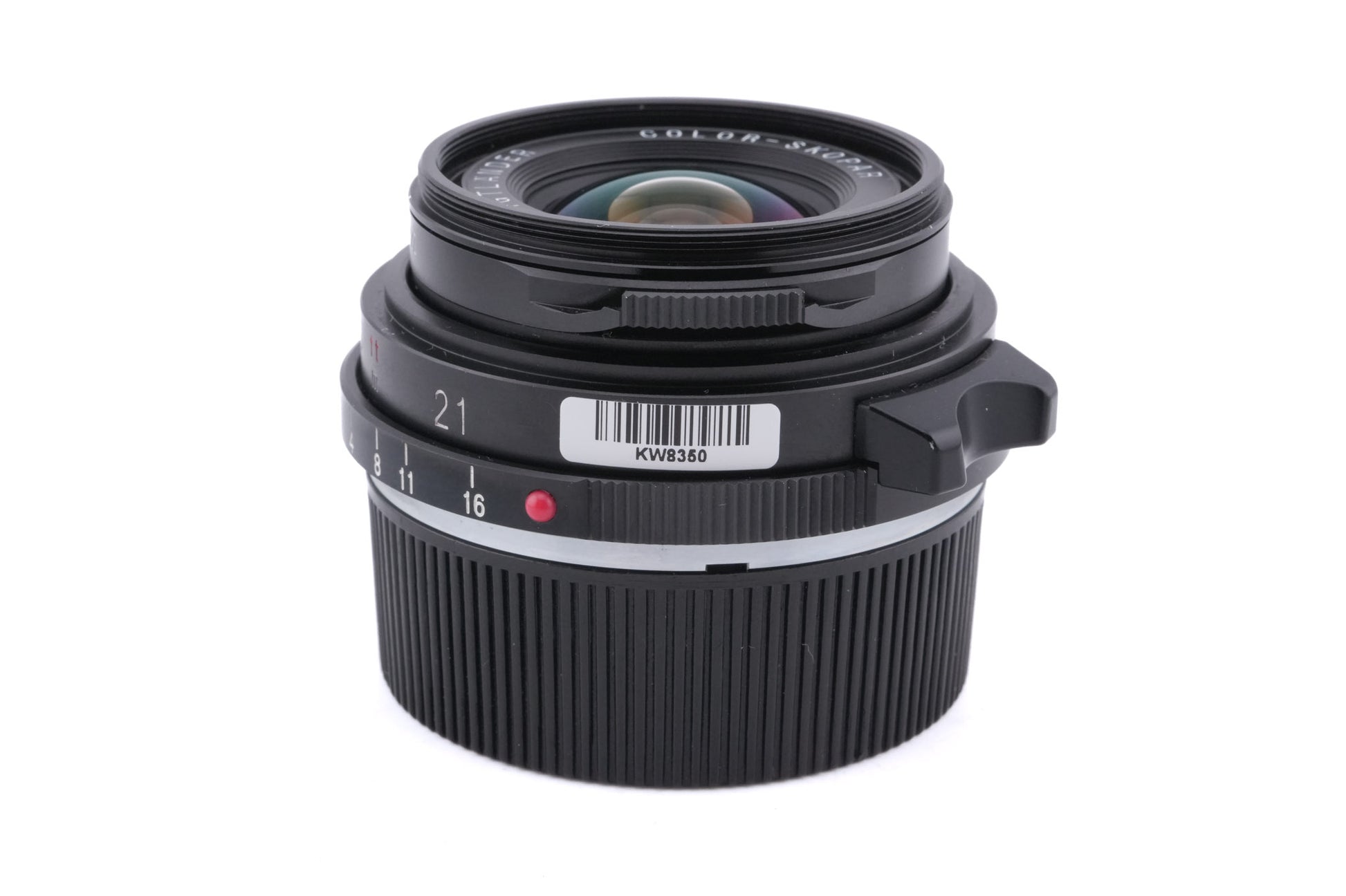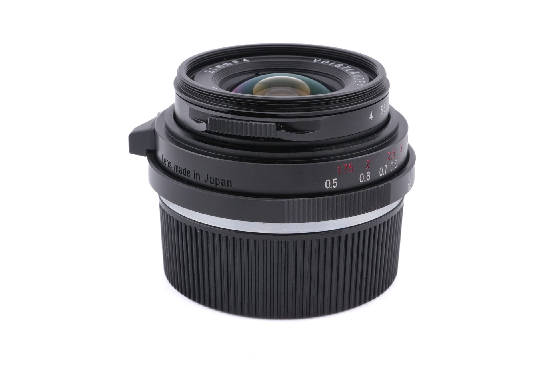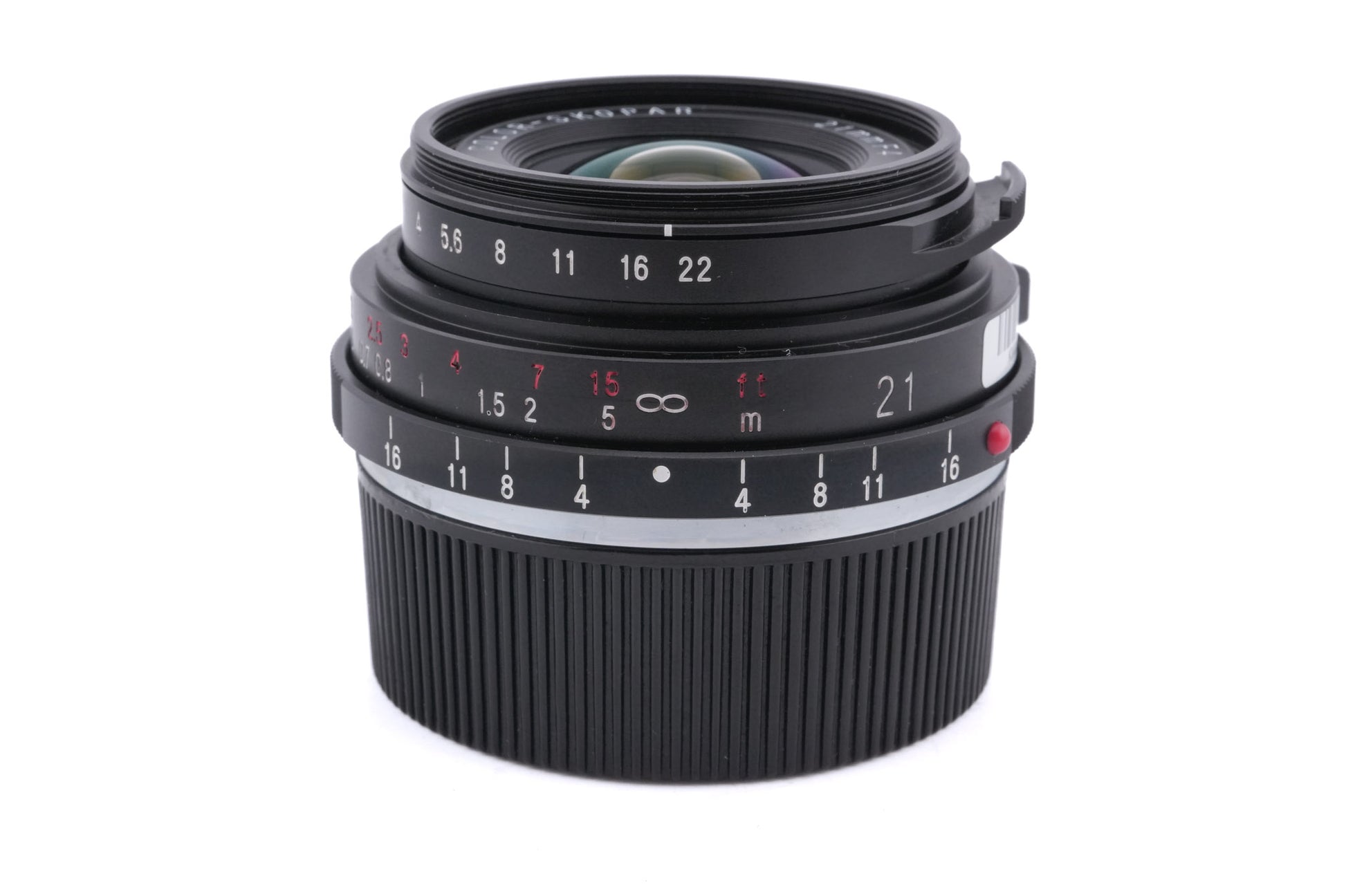 Manual focus wide-angle lens made for M-mount rangefinder cameras by Cosina Voigtländer starting in 2007. Metal body available in black.