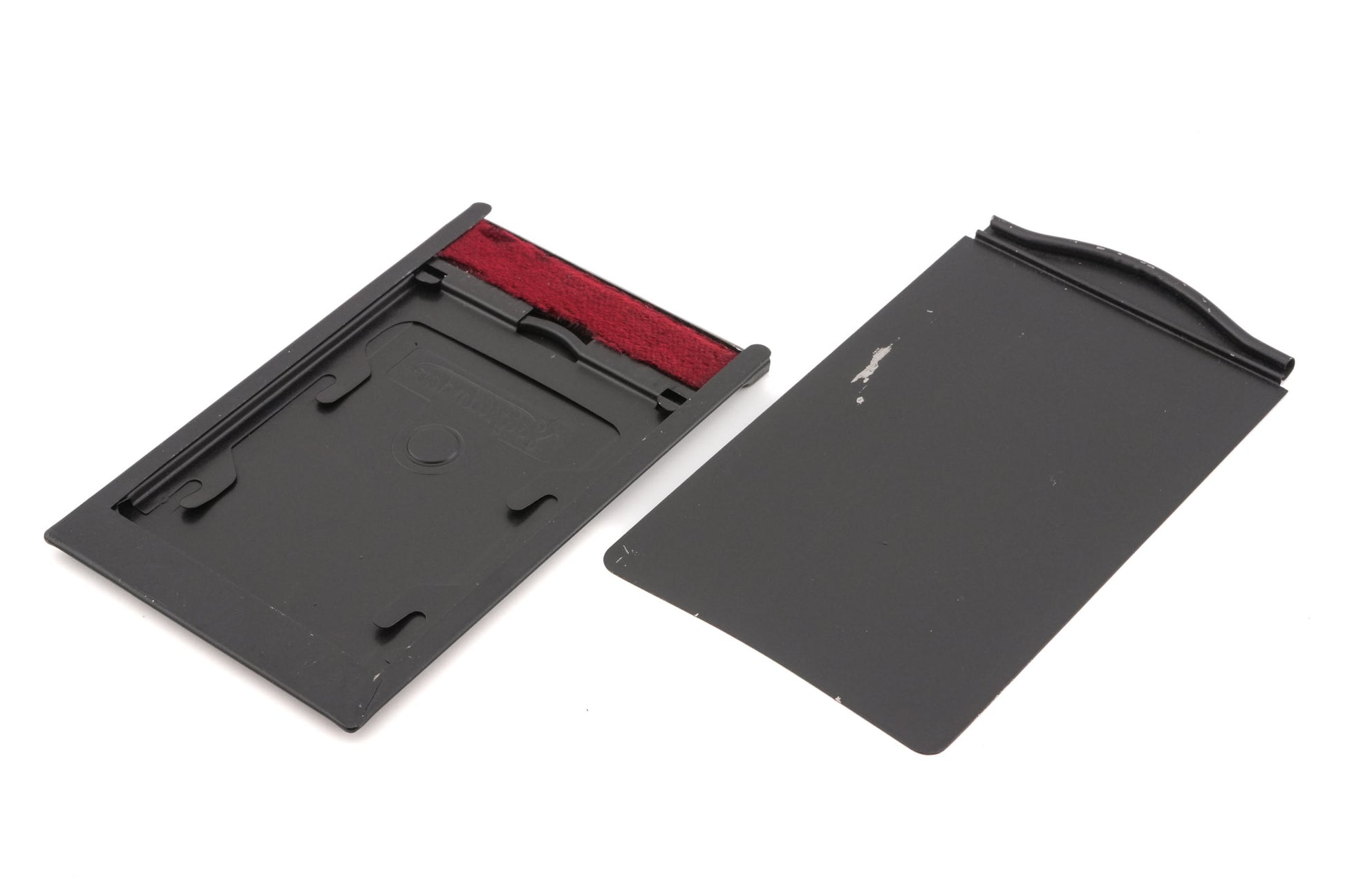 Film holder made by Voigtländer for cut film or plates. The slot for the film measures 6.5 x 8.6cm. Metal body available in black.
