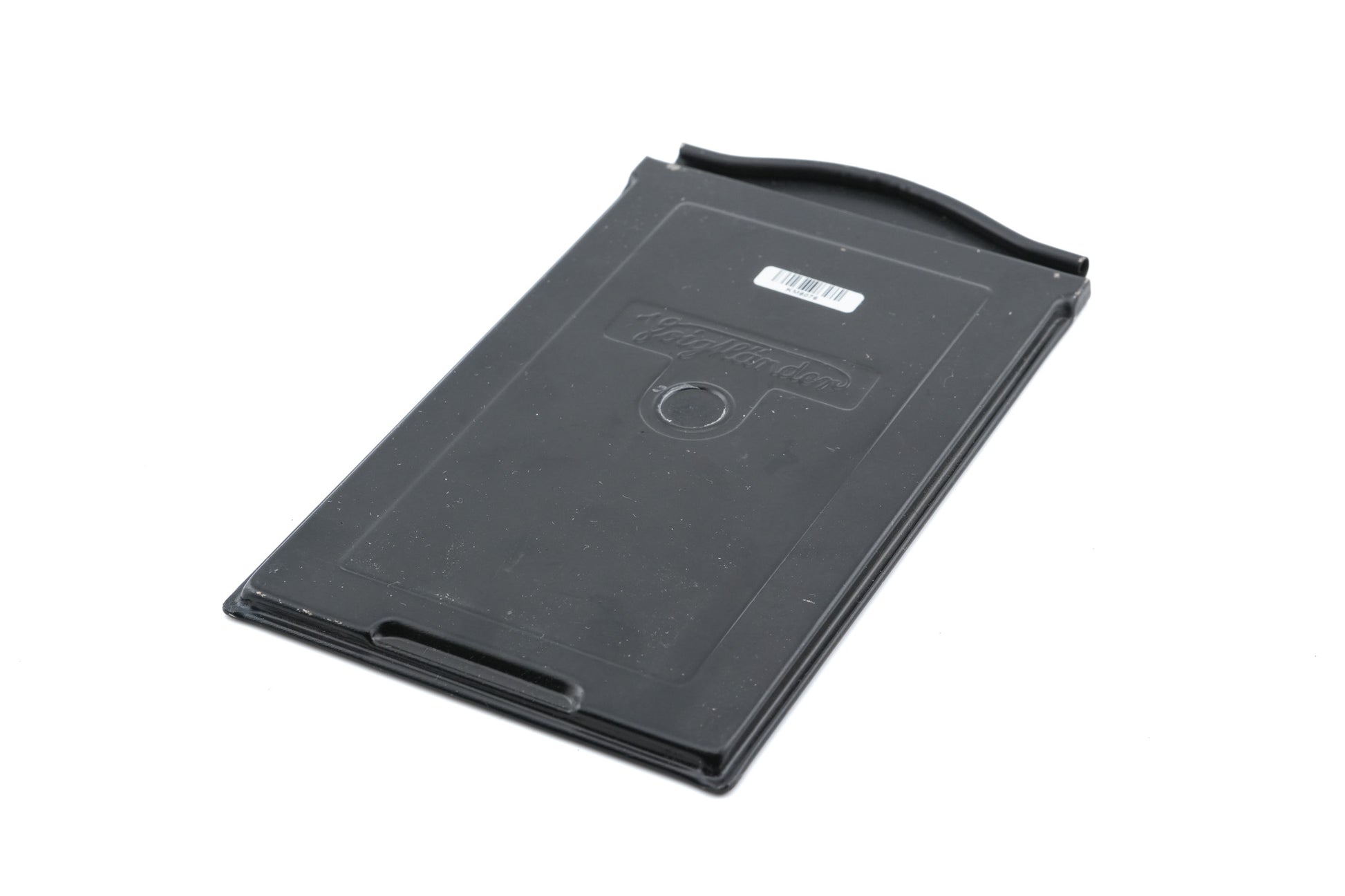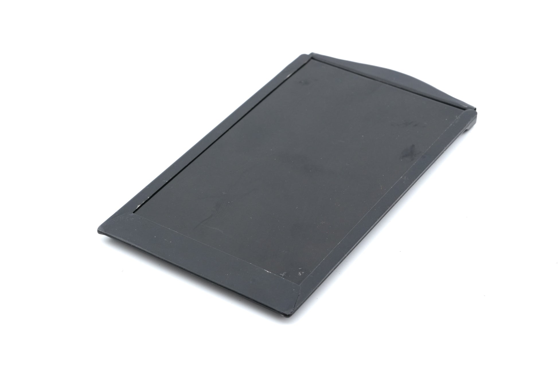 Film holder made by Voigtländer for cut film or plates. The slot for the film measures 6.5 x 8.6cm. Metal body available in black.