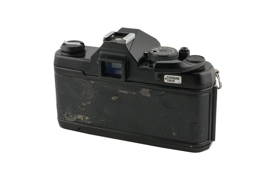 Manual focus Contax/Yashica mount 35mm SLR released by Yashica in 1979. It has a self-timer and a built-in light meter with an LED read-out in the finder. Plastic and metal body available in black.