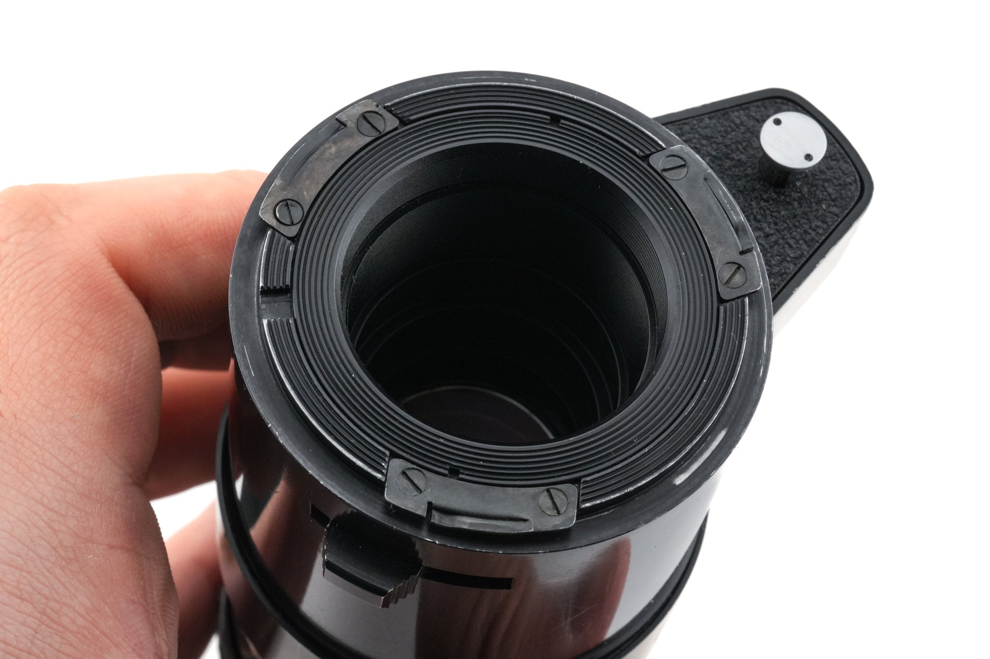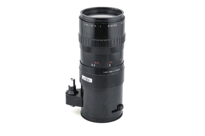 Manual focus telephoto lens made for Alpa mount 35mm SLRs by P. Angenieux. It has an aperture dial rather than a ring. Metal body available in black.