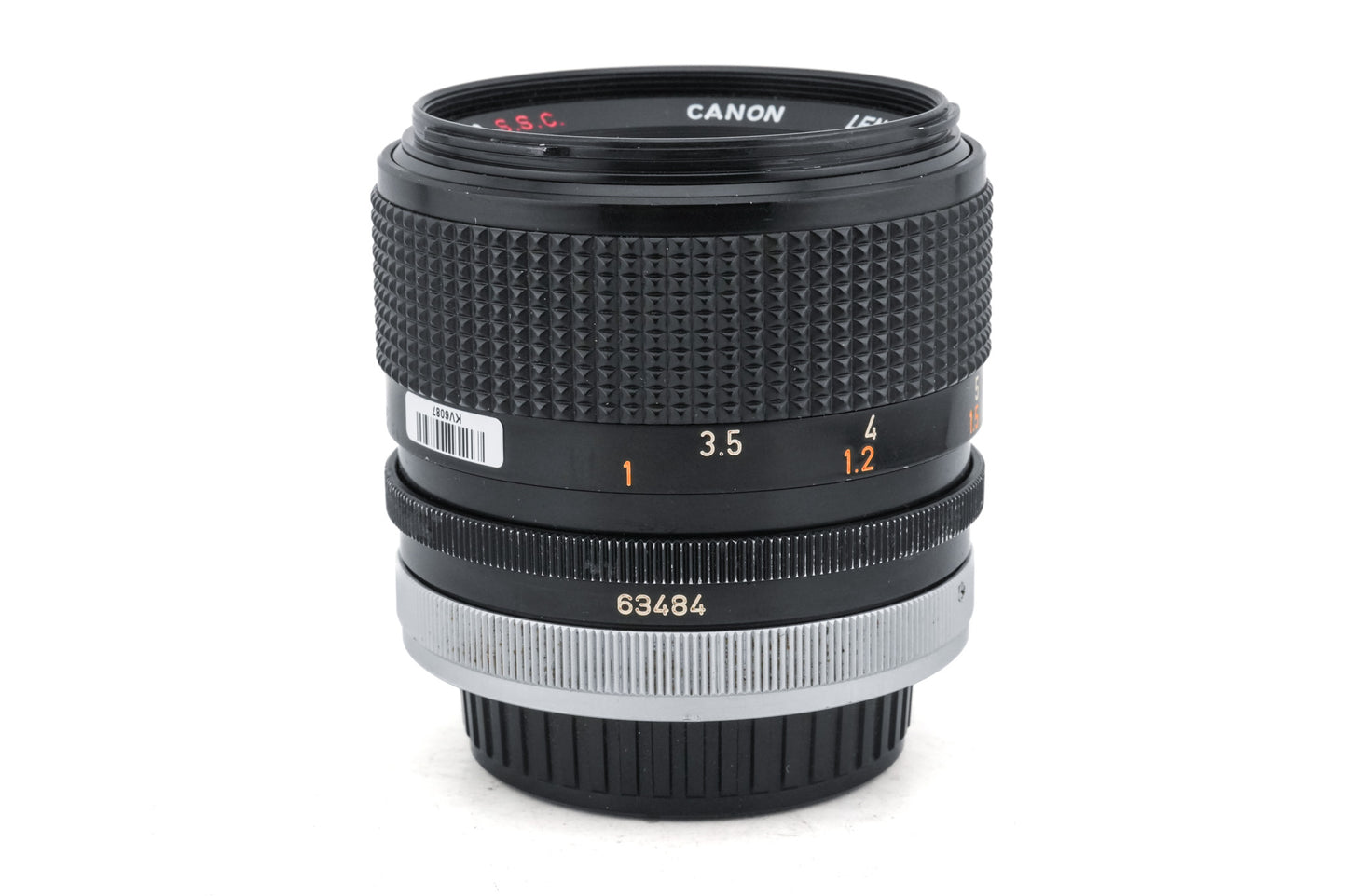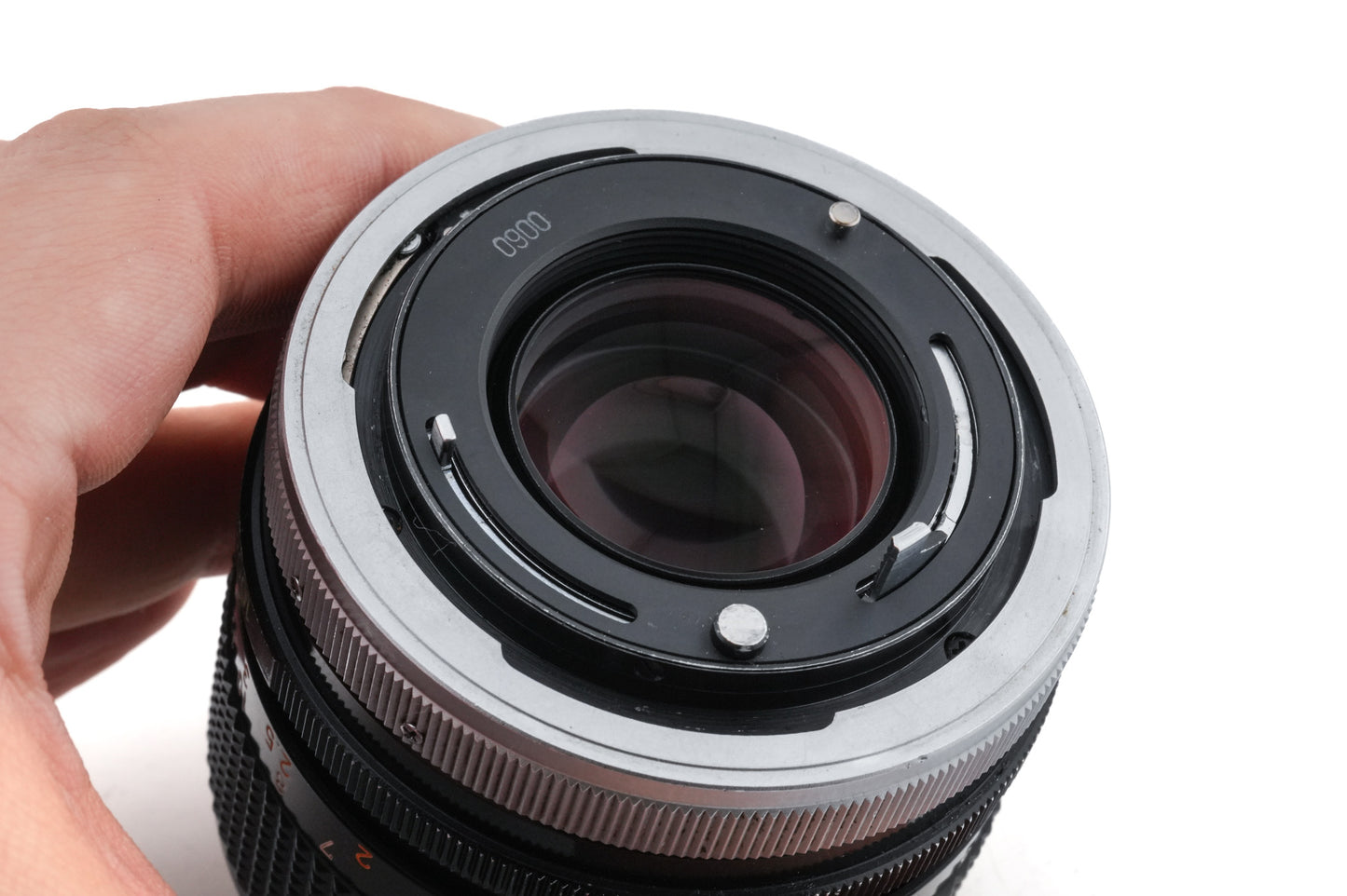 Manual focus medium telephoto lens made for FD-mount 35mm SLRs by Canon starting in 1973. Uses Canon's Super Spectra Coating (S.S.C.). Has Canon's older-style breech-lock mount. The original price (31,000 Yen) is equal to ~525 Euros in 2023. Metal body available in black.