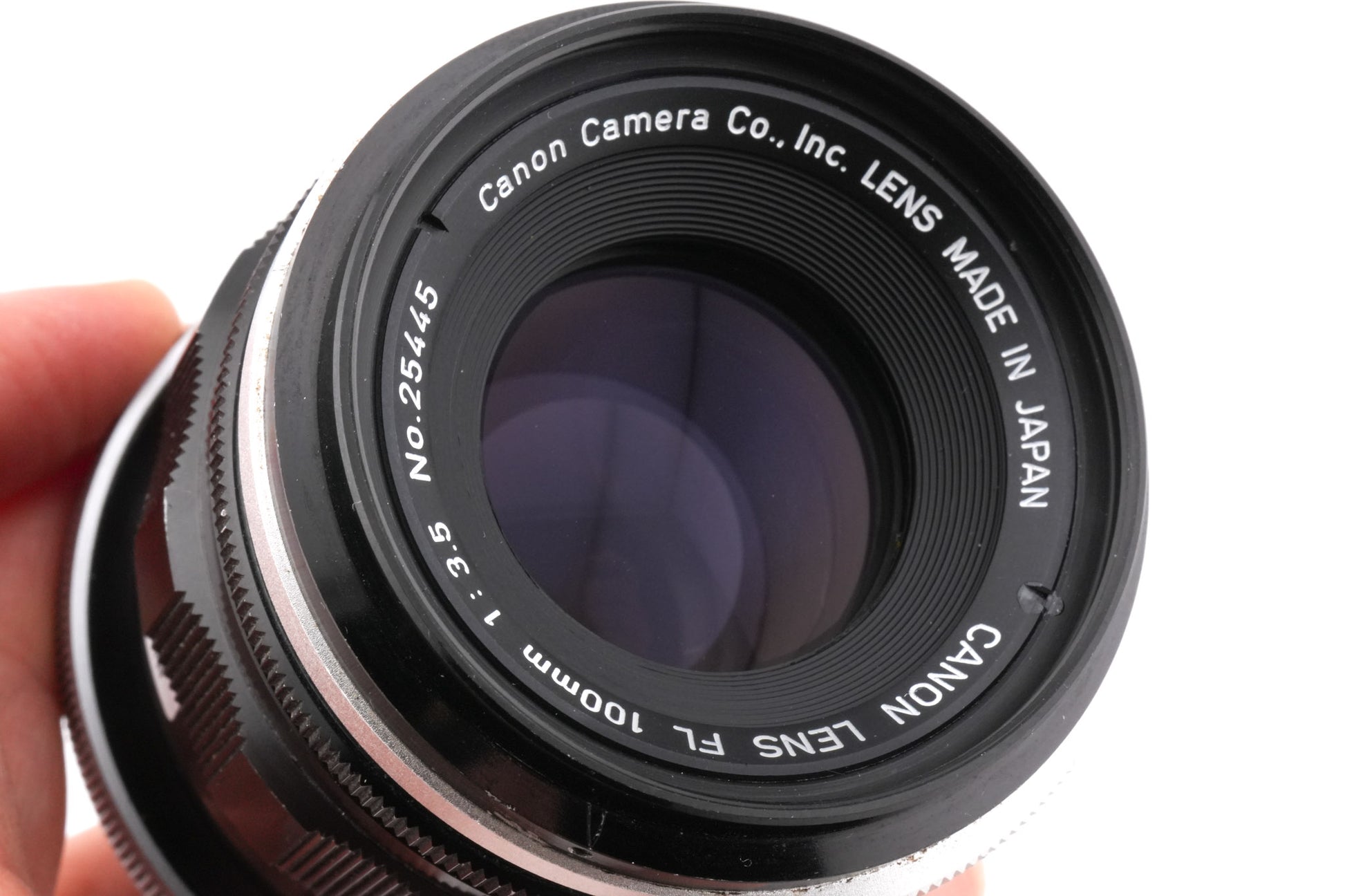 Manual focus telephoto lens made for FL-mount 35mm SLR cameras introduced by Canon. Metal body available in black.