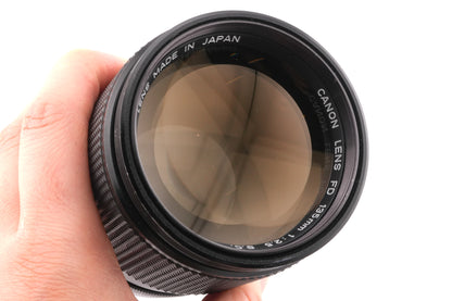 Manual focus telephoto lens made for FD-mount 35mm SLR cameras by Canon in 1973. It uses Canon's Spectra Coatings (SC) to improve color rendition, has a built-in lens hood, and uses the older breech lock mounting mechanism. The original price (30500 Yen) is the equivalent of around 550 Euros in 2025. Metal body available in black.