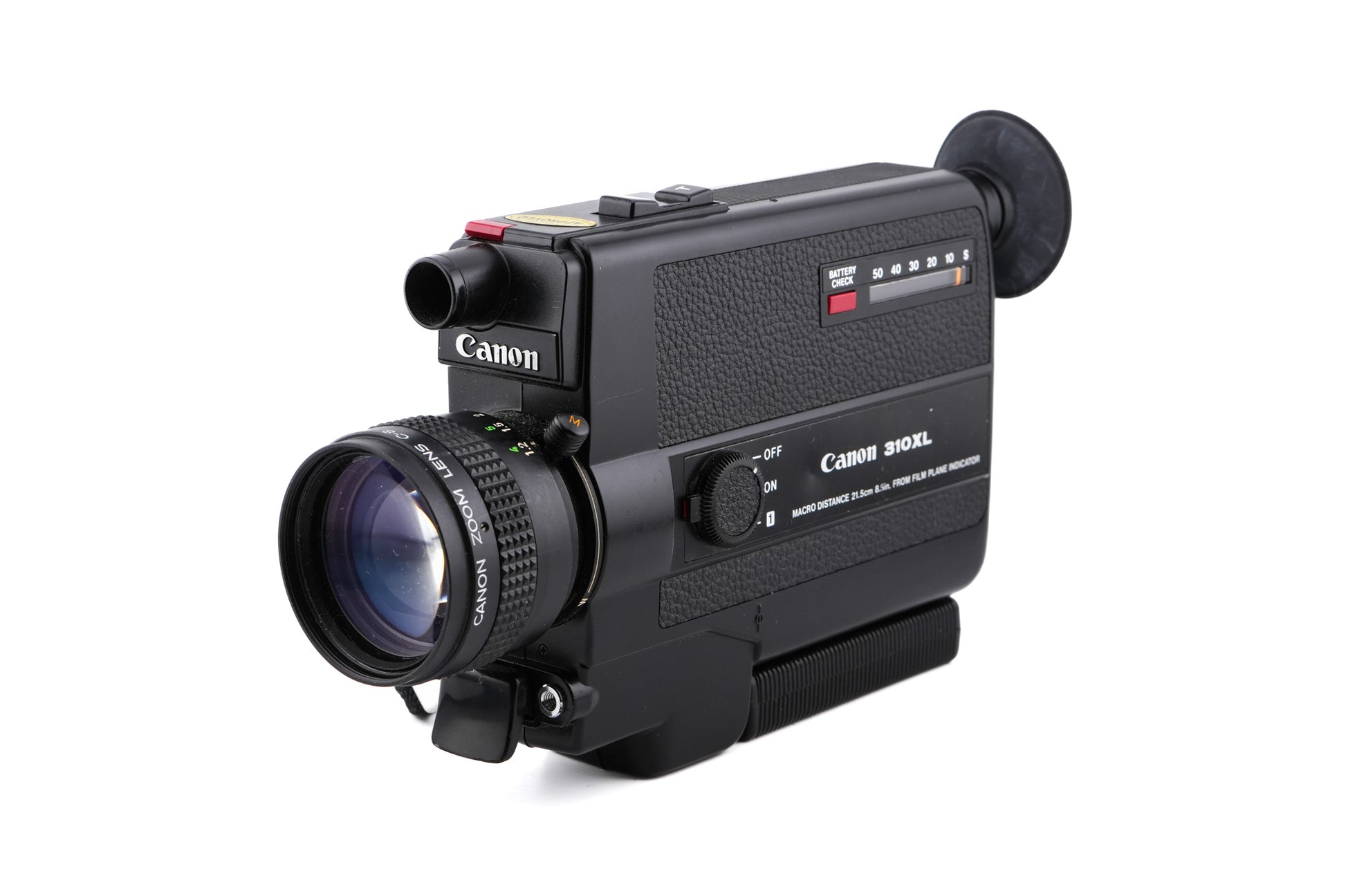 Manual focus super 8 movie camera released by Canon in 1975. Cheaper brother of the 514XL. The lens has single Spectra Coating.