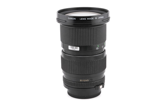 Manual focus normal zoom made for FD-mount 35mm SLR cameras introduced by Canon starting in 1981. The original price (59,000 Yen) is equivalent to ~500 Euros in 2023. Plastic body available in black.