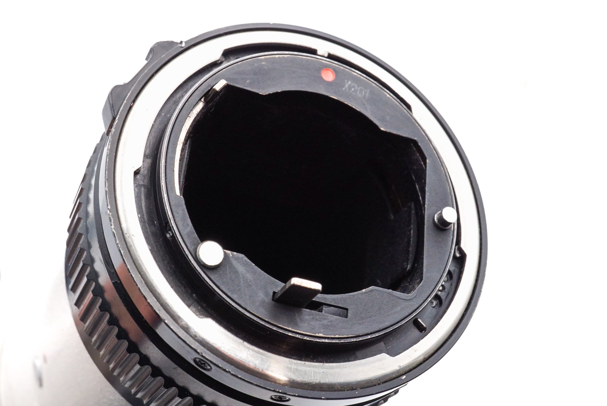 Manual focus telephoto lens for Canon FD-mount by Canon in 1979, originally sold for 495000¥ (4912€ today).Features a proprietary drop in filter system. Metal body available in gray.