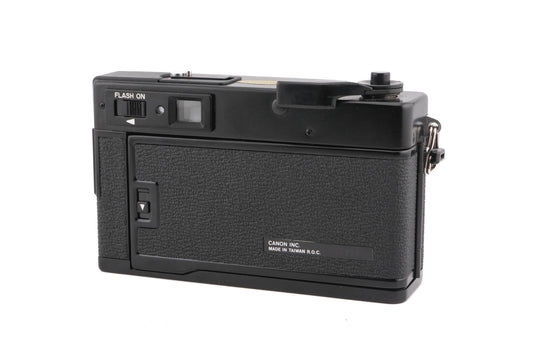 Manual focus 35mm rangefinder camera released by Canon in 1978 for the US and Chinese markets only. It has programmed auto exposure and a built-in flash. Uses two separate batteries for operation (PX625 for shutter & meter, AA for flash). Metal body available in black.