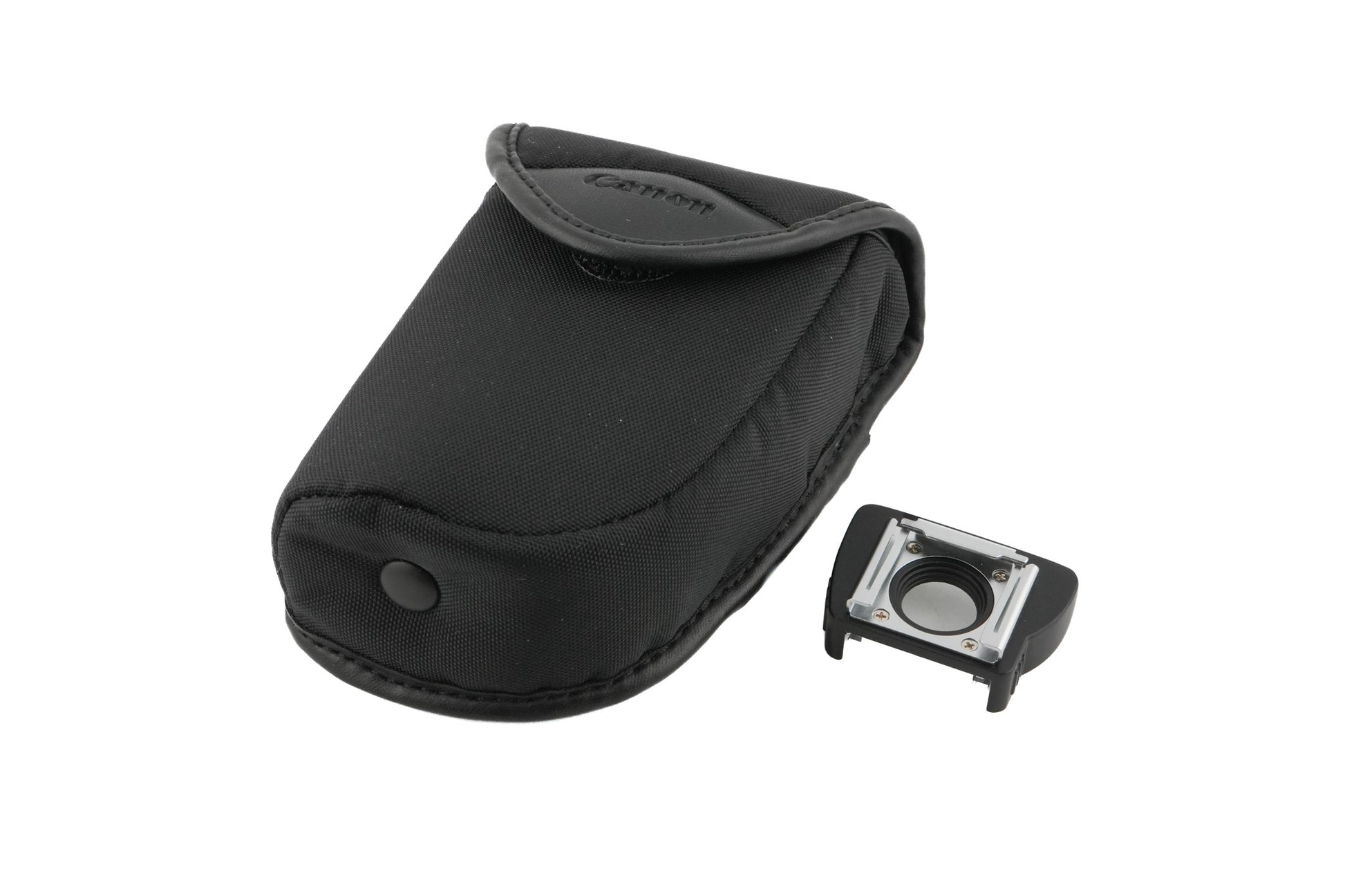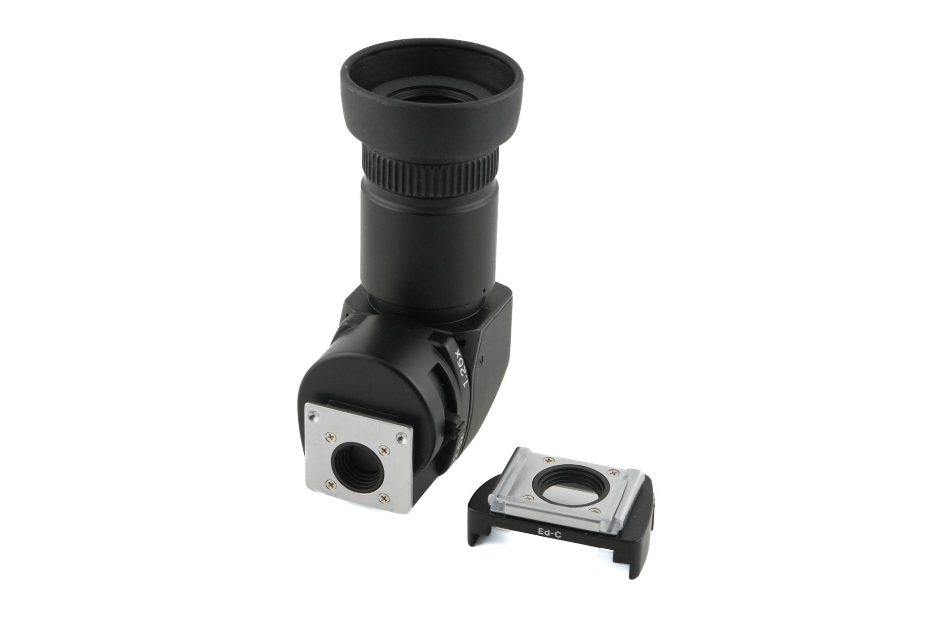 Angle finder made for Canon EOS bodies introduced by Canon. It rotates 360° with 45° increments and has a magnification of 1.25x and 2.5x (adjustable by a switch on the side). When set at 1.25x the finder will show a complete view of the camera's viewfinder. At 2.5x the image is cropped but manual focus is easier. It has an adjustable diopter for focusing and accepts different eyepiece adapters to fit different cameras (comes with an Ec-c and Ed-c adapter). Plastic body available in black.