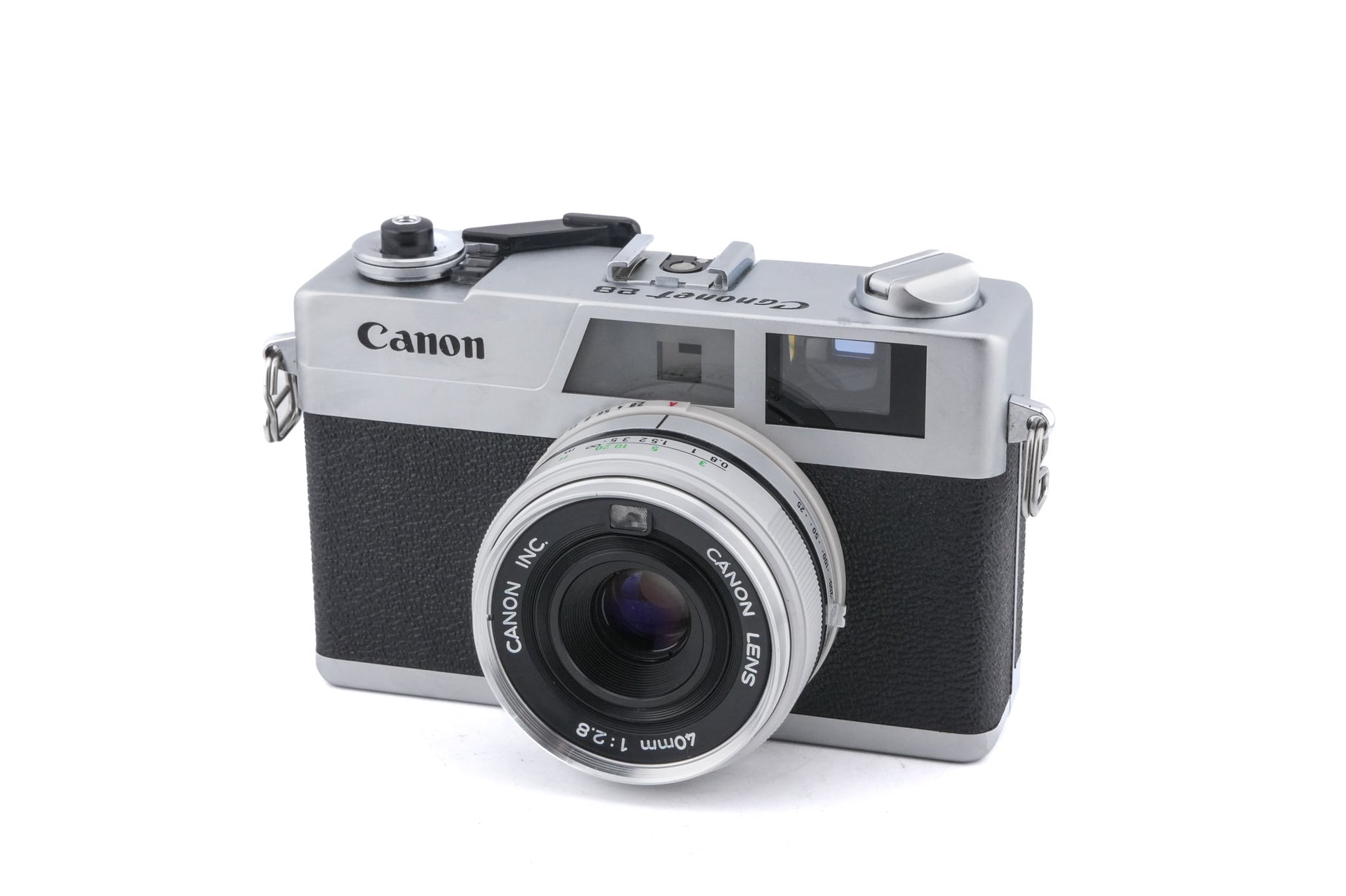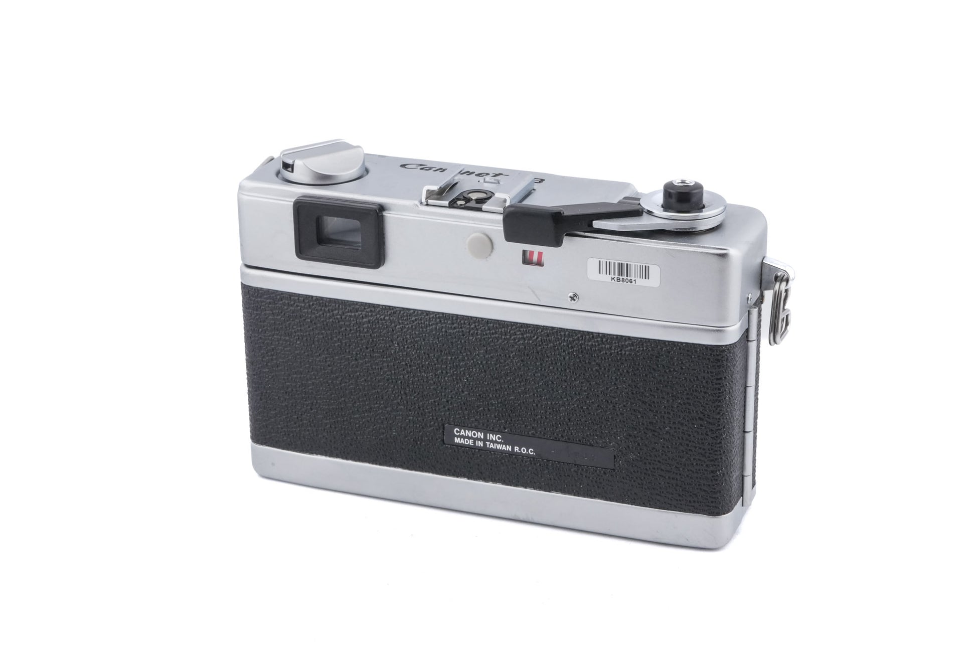 Manual focus 35mm rangefinder camera released by Canon in 1971. The original price (18300 Yen) is the equivalent of around 385 Euros in 2025. Metal body available in silver.