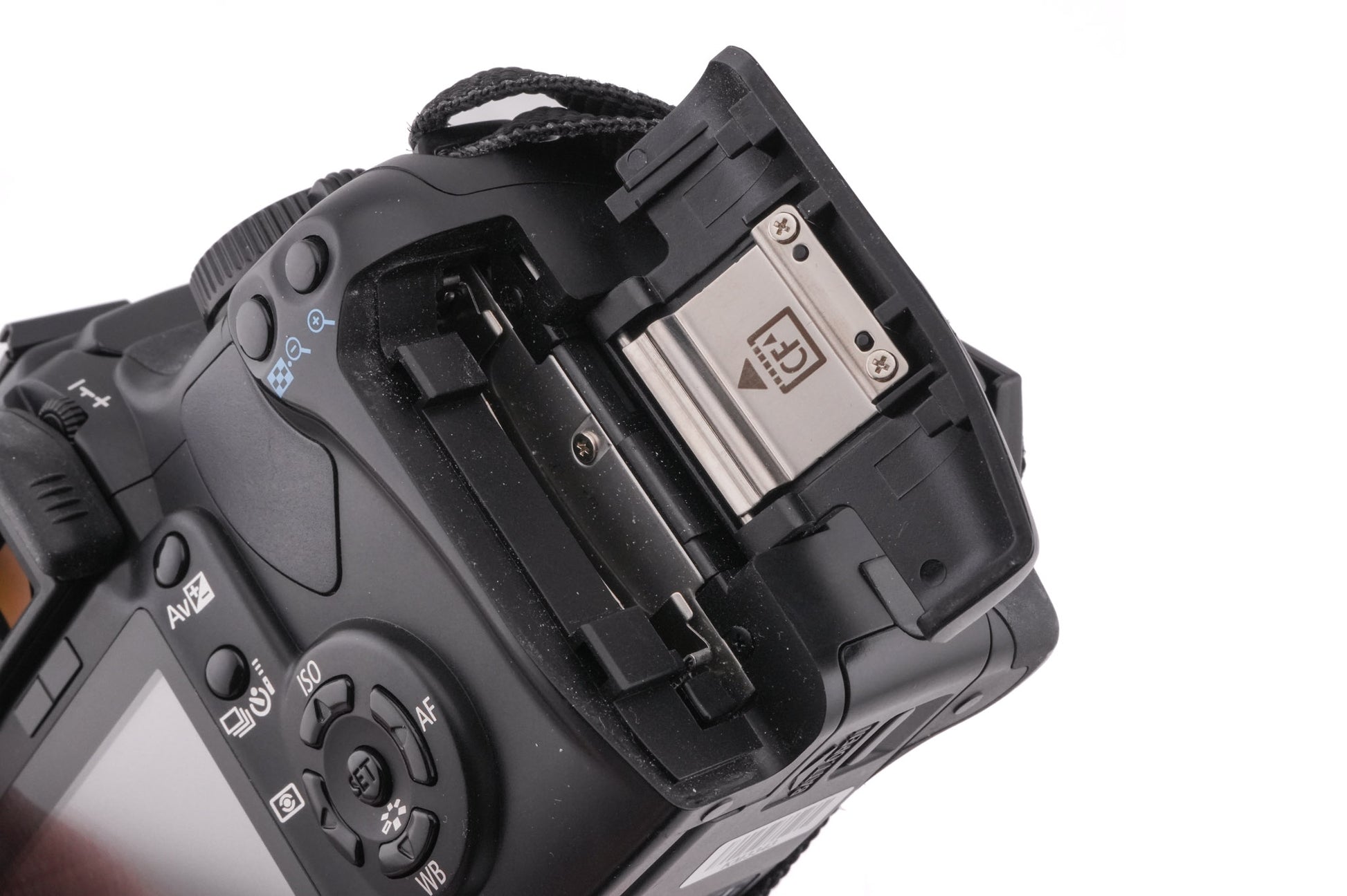 Autofocus APS-C EF-S mount DSLR camera released by Canon in 2006. It is also known as the Kiss Digital X (JP) and Digital Rebel XTi (NA). Plastic body available in black & silver.