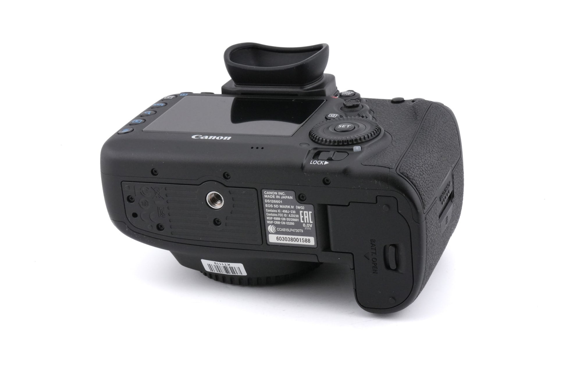 Autofocus EF-mount digital SLR released by Canon in 2016. It has a built-in GPS, 61 autofocus points, and is capable of recording 4K video. Compared to previous 5D models, the Mk IV has improved continuous shooting and autofocus performance. Metal body available in black.
