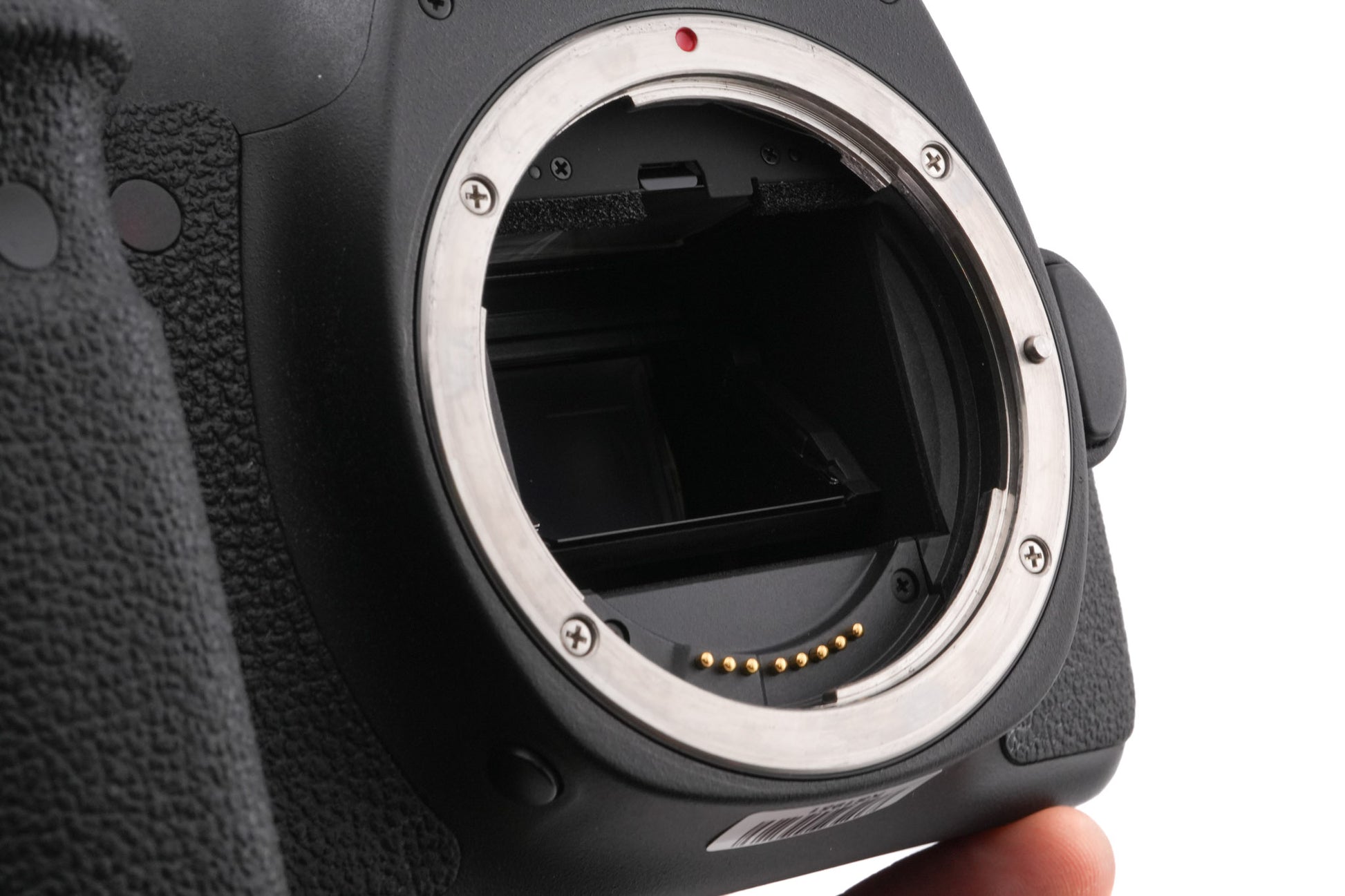 Autofocus full-frame EF-mount DSLR camera released by Canon in 2012. The (WG) model has WiFi and GPS functions. Features 11-point autofocus and full HD video capability. Metal and plastic body in black.
