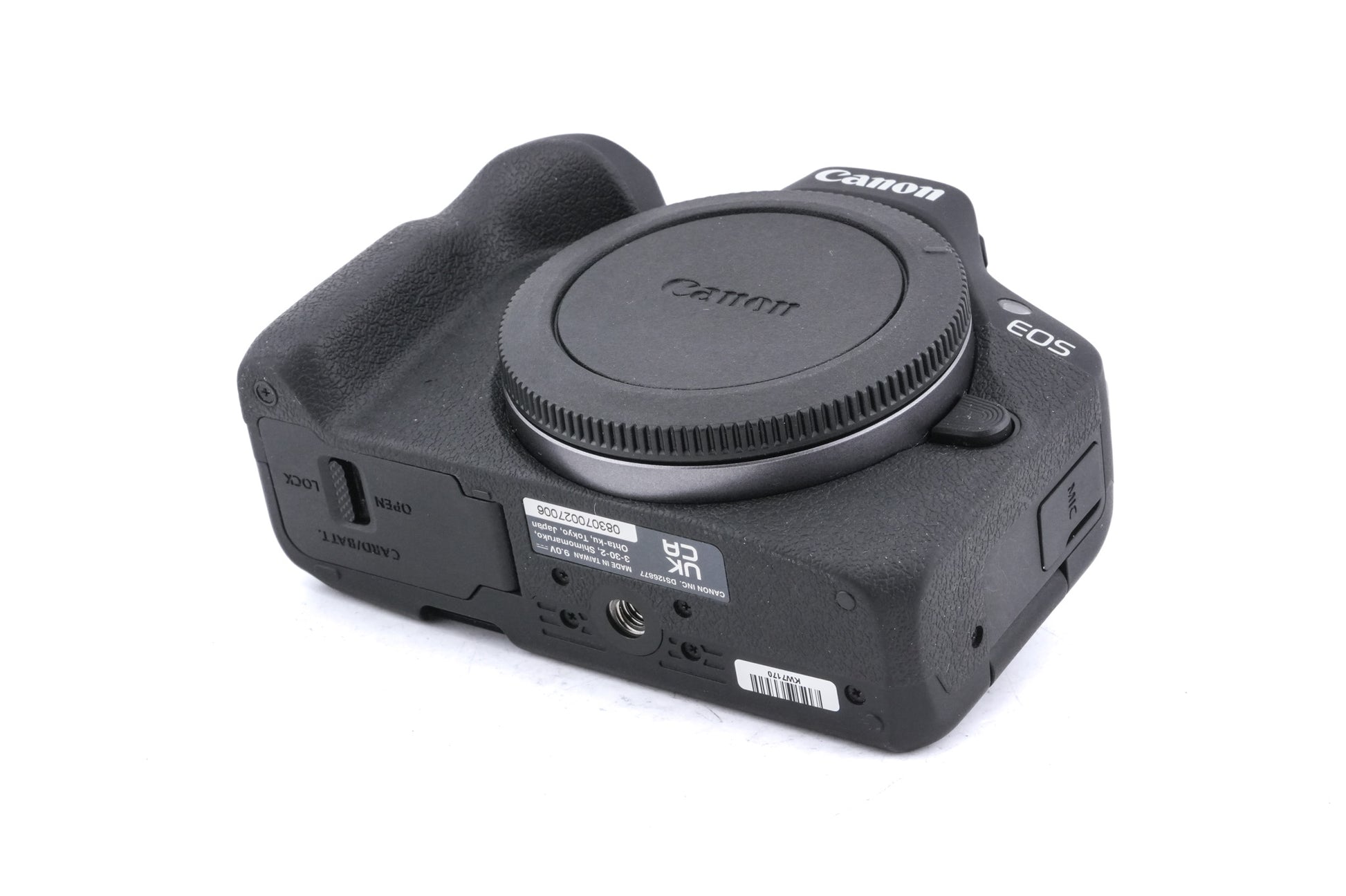 RF-S-mount digital mirrorless camera released by Canon in 2023. It records 3840 x 2160, 30p video in H.265. It has a 3″ fully articulating rear touch LCD, a built-in flash, and 651 autofocus points. Metal and plastic body available in black.