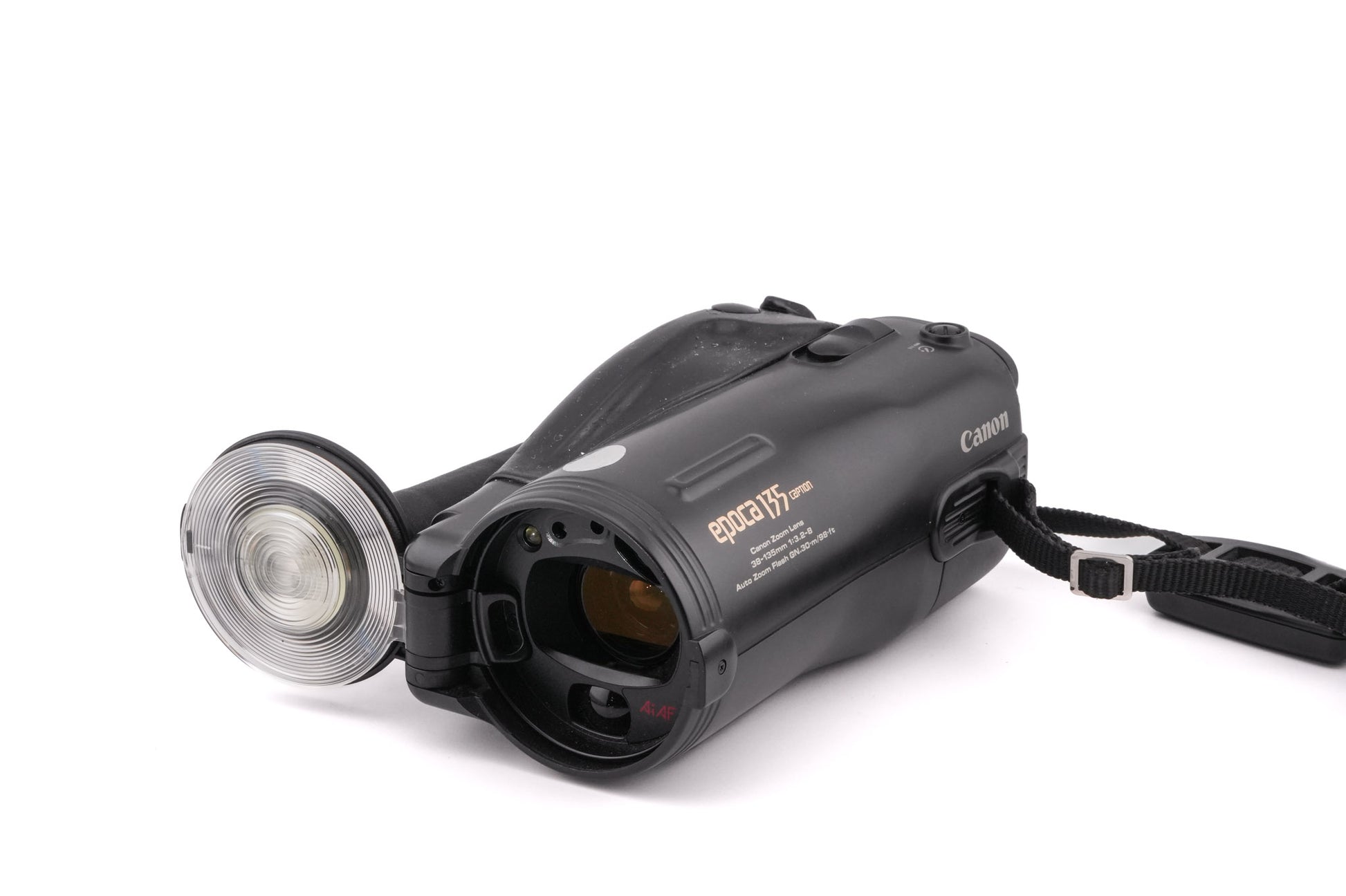 Autofocus 35mm point-and-shoot camera released by Canon in 1992. It has a built-in flash in the lens cap. It is also known as the Autoboy Jet 135 in Japan and Photura 135 in the US. Plastic body available in black.