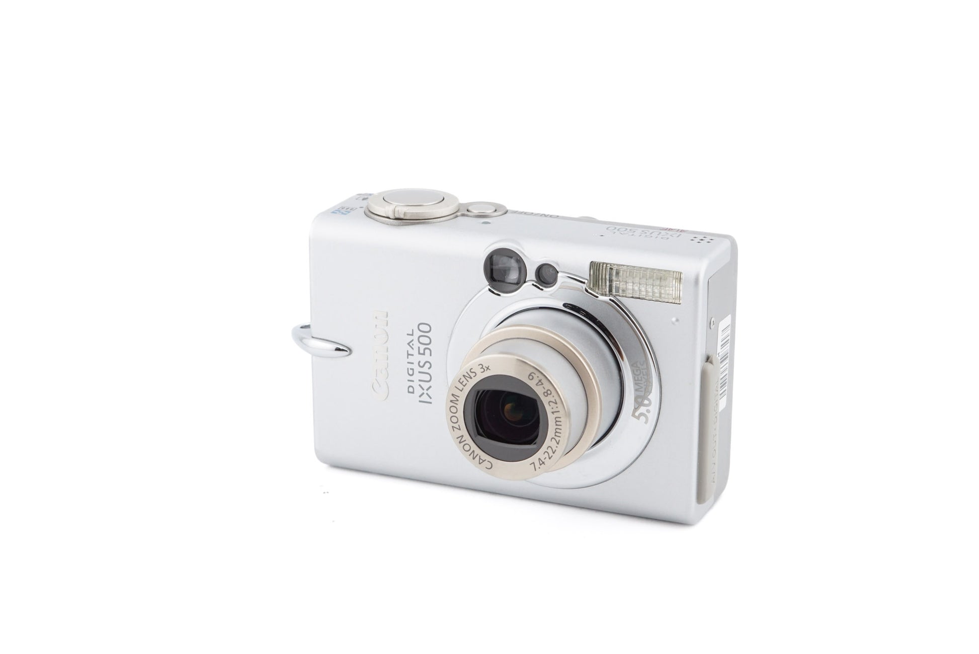 Autofocus compact digital point-and-shoot camera made by Canon introduced in 2004. Has a 36-108mm equivalent focal length, a built-in flash, and a 1.5″ LCD screen. Records 640 x 480 (30 sec) video. Metal body available in silver.