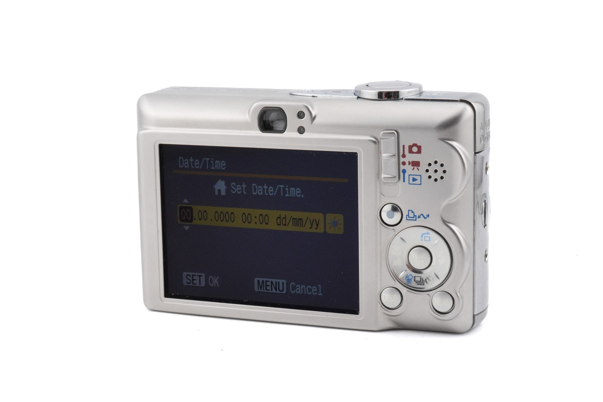 Autofocus digital point-and-shoot camera by Canon in 2006. It has a 35 - 105 mm 35mm equivalent lens and a 2.5” LCD. Shoots 640 x 480 at 30fps movie clips. Metal/plastic body available in silver.