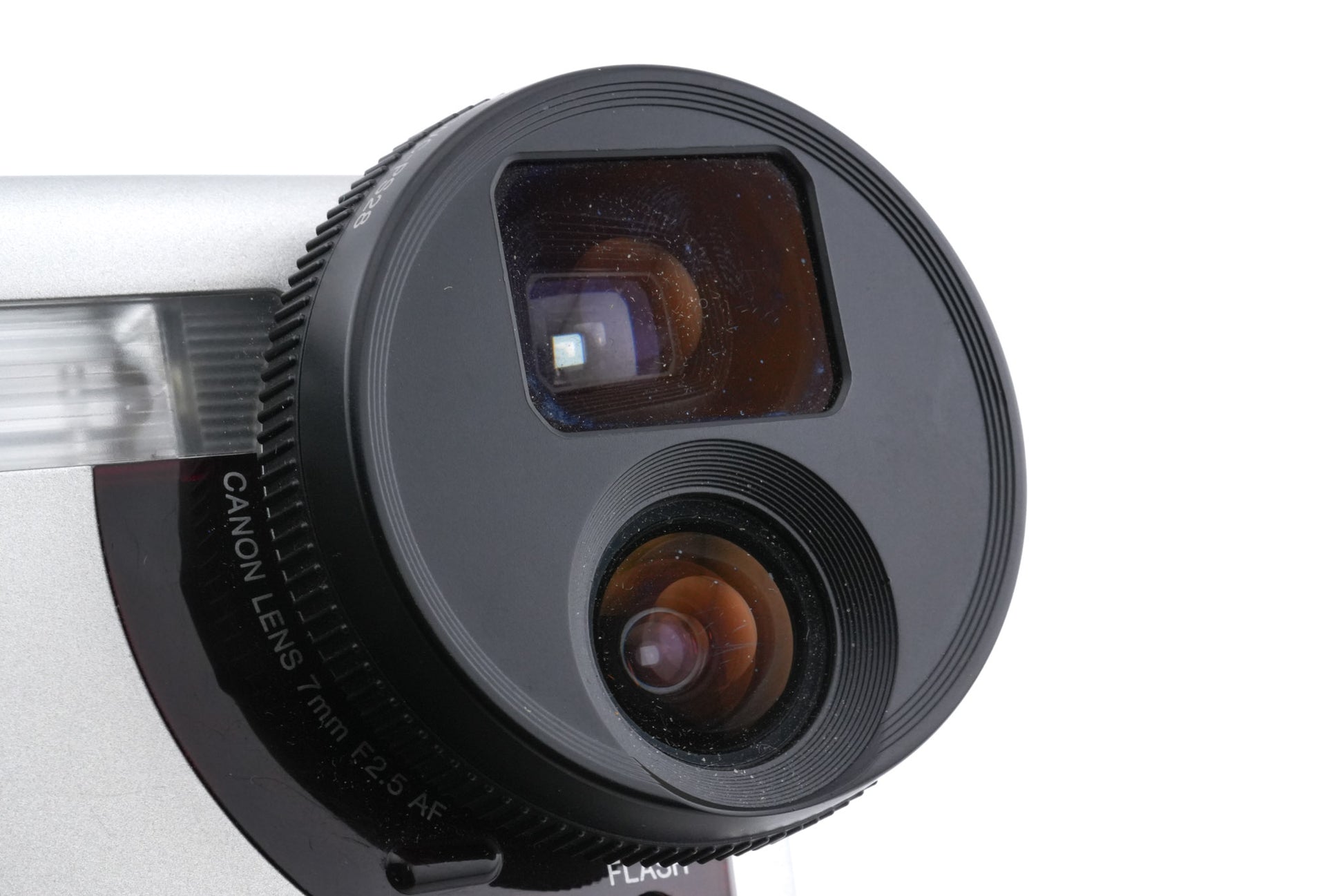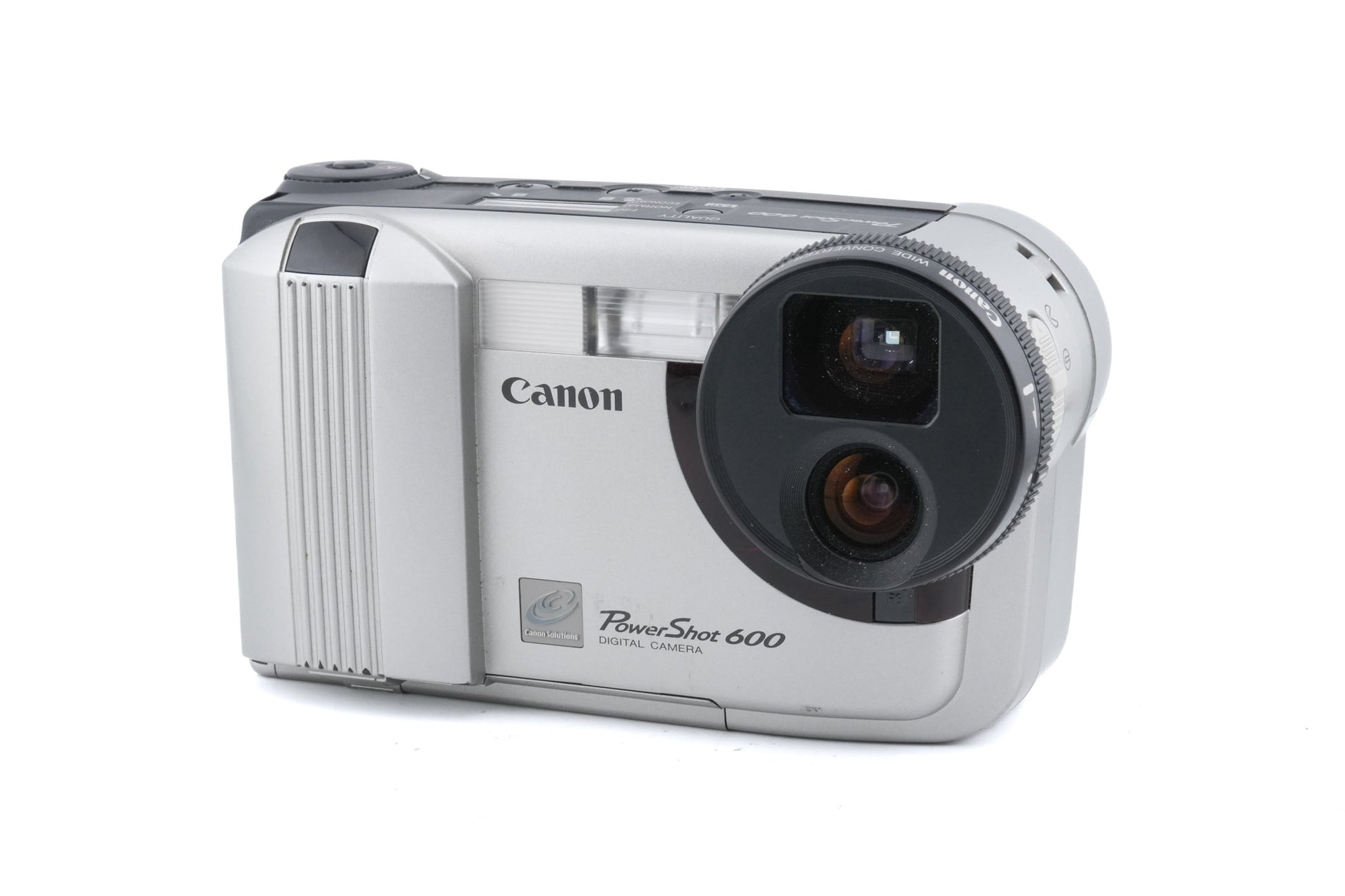 Autofocus digital compact camera released by Canon in 1996. It has 1 MB of internal memory but is also compatible with PCMCIA Type II and III hard disk cards. The original price (128,000 Yen) is equivalent to ~ 900 Euro in 2023. The lens gives the equivalent field of view to a 50mm lens on 35mm / full frame. Plastic body available in gray.