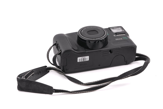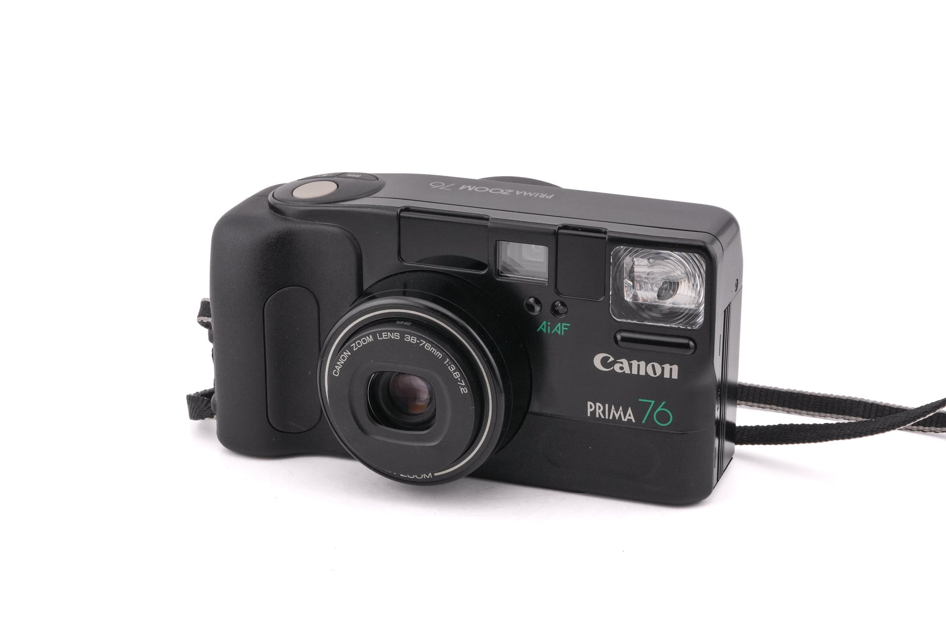 Autofocus 35mm point-and-shoot camera introduced by Canon in 1991. It is also known as the Sure Shot Mega Zoom 76 in America and Autoboy Zoom 76 in Japan. It has a date back and captions like ”I love you”. The camera also features a separate remote controller in the body to take photos remotely. Plastic body available in black.