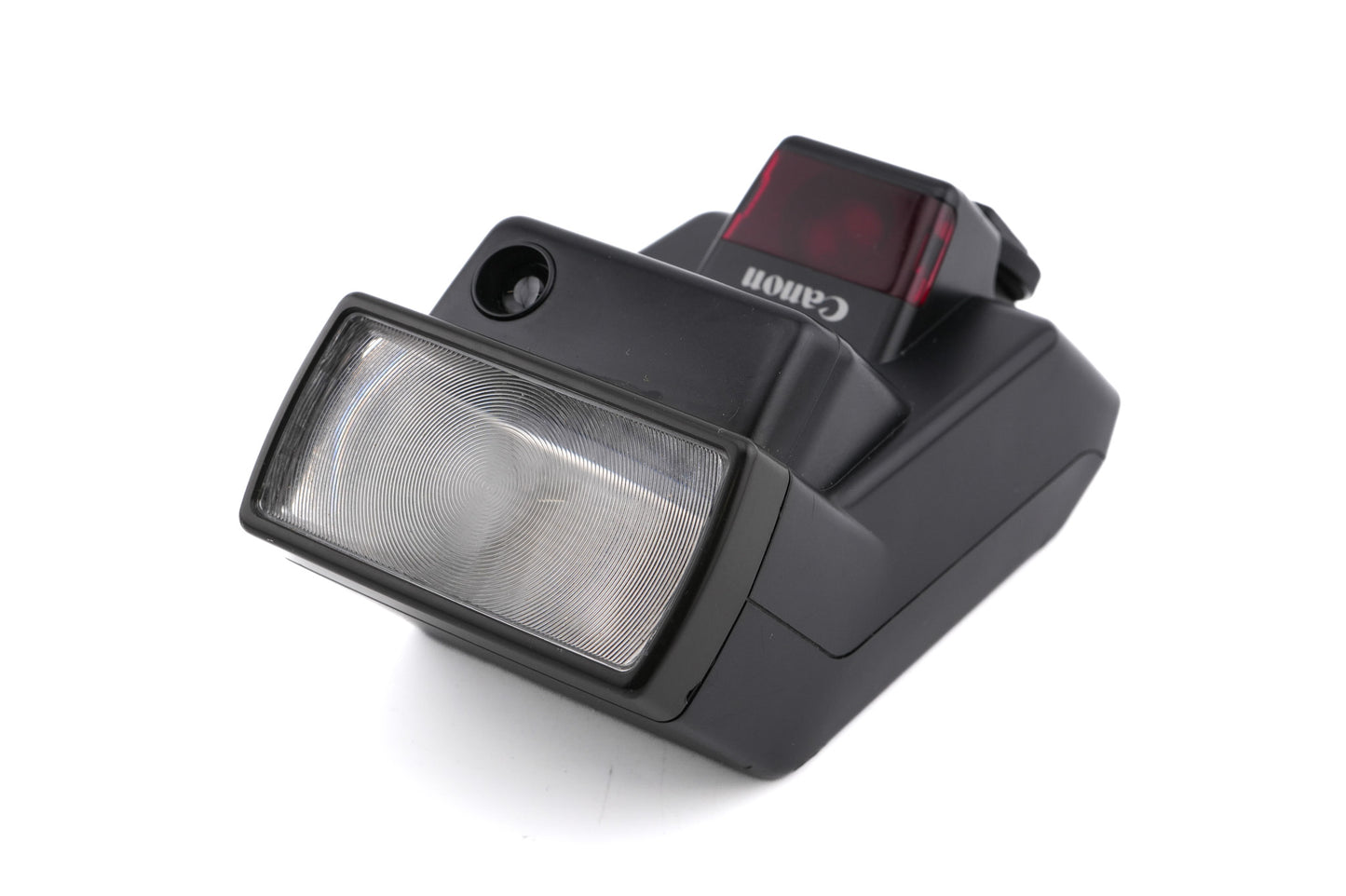 Flash made for EF-mount SLR cameras by Canon. Automatically zooms and compensates for lenses from 28mm to 70mm. Plastic body available in black.