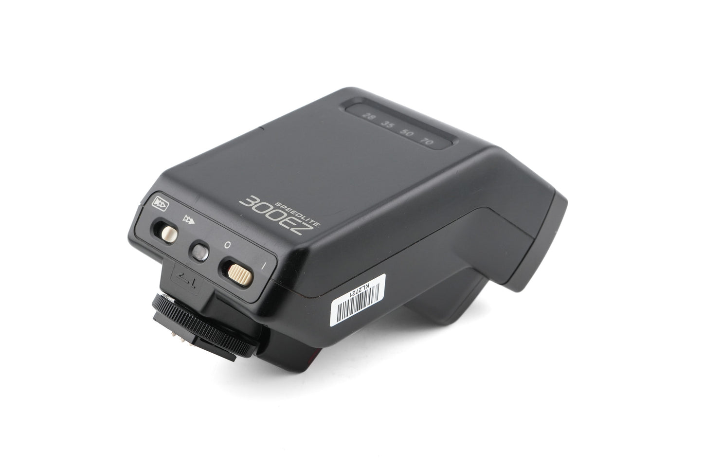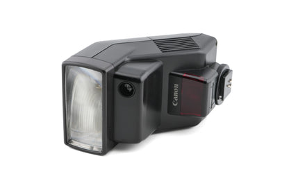 Flash made for EF-mount SLR cameras by Canon. Automatically zooms and compensates for lenses from 28mm to 70mm. Plastic body available in black.