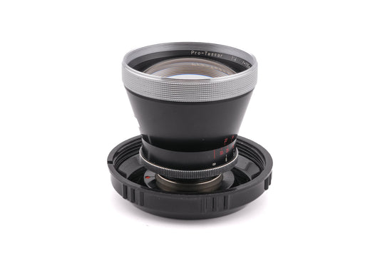 Manual focus telephoto lens made for Contaflex leaf shutter SLR cameras introduced by Carl Zeiss. The Contaflex systems replace the front element of the original Tessar normal lens with extended optics to allow for telephoto/wide-angle lenses. The aperture and focus are controlled by the camera itself. Metal body available in black.