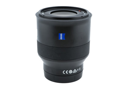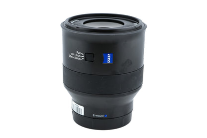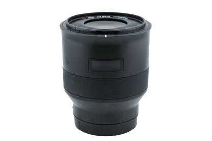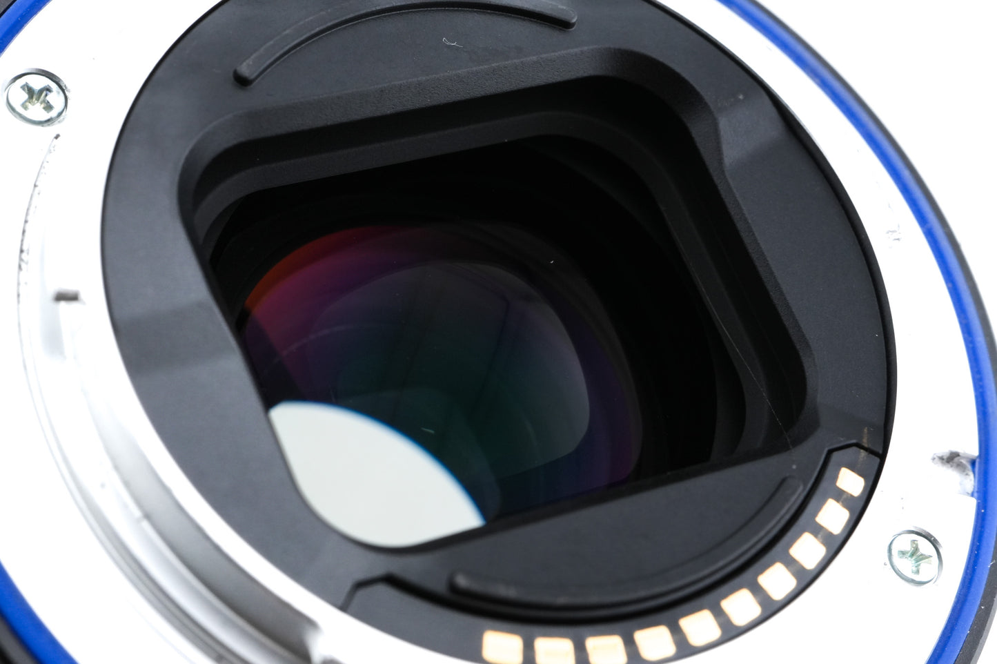 Autofocus normal lens for Sony E-mount full-frame mirrorless cameras made by Carl Zeiss. Made in Japan. CF stands for CloseFocus, the lens is capable of a magnification ratio of 1:3.3. The lens features T* coating, an OLED display and a Distagon lens design.