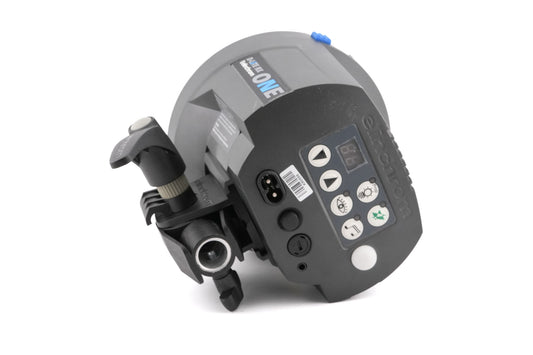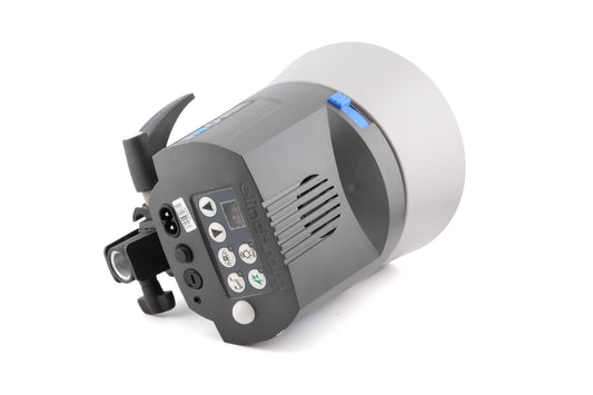 Studio flash made by Elinchrome. Plastic construction available in black.