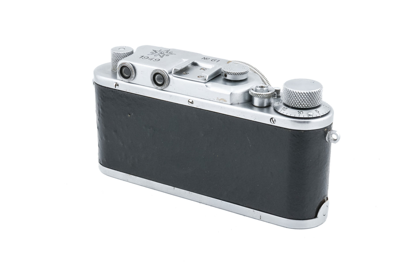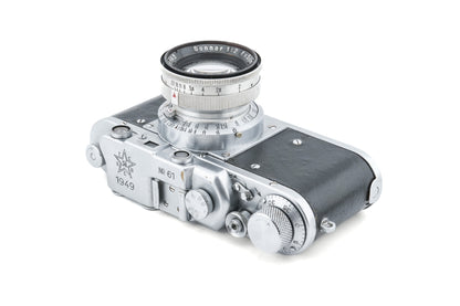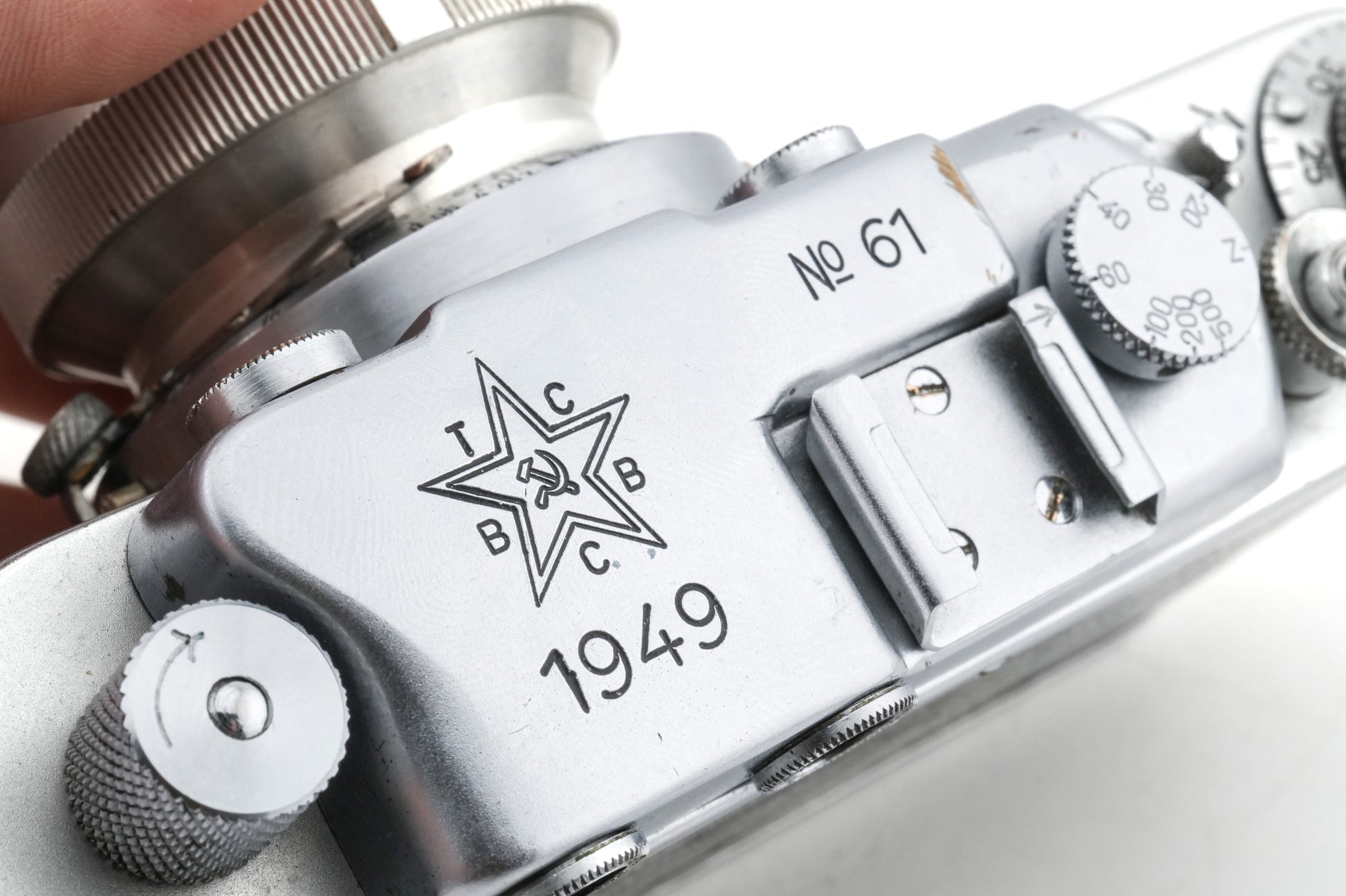 Manual focus Contax/Kiev mount 35mm rangefinder camera made in the Soviet Union. This camera was never produced commercially but is known as the "General's FED" for its prevalence in the Soviet military. The model name of this camera, TSVVS, stands for Topographical Service of the Air Force in Russian. It is very similar to a FED rangefinder camera with a modified bayonet mount for accepting Contax/Kiev mount lenses. These cameras are usually, but not always, found paired with a lens made by Carl Zeiss. Metal body available in silver.