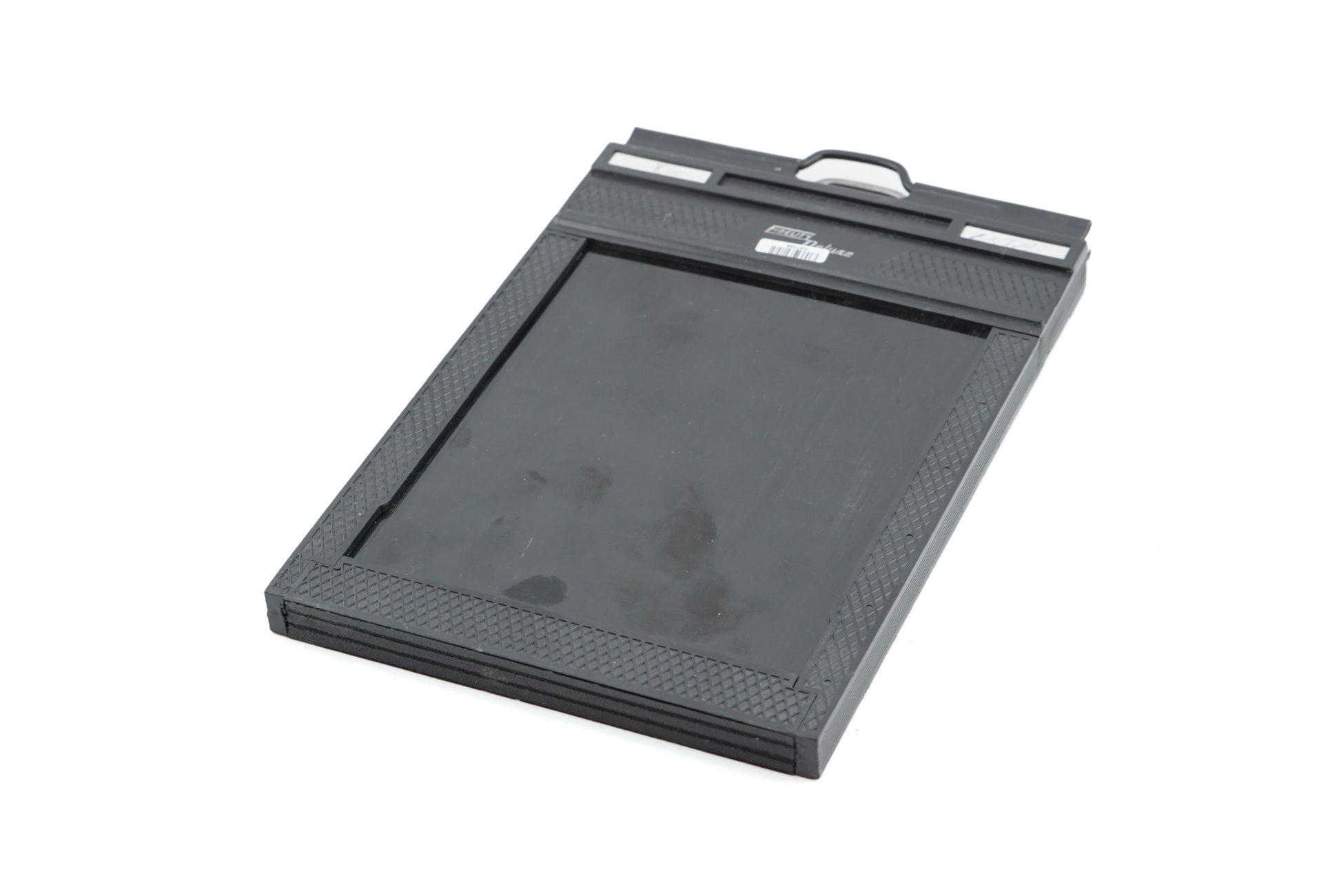 4x5" sheet film holder. Each holder can hold two sheets of film, one on each side. Made in the USA. Black plastic construction.