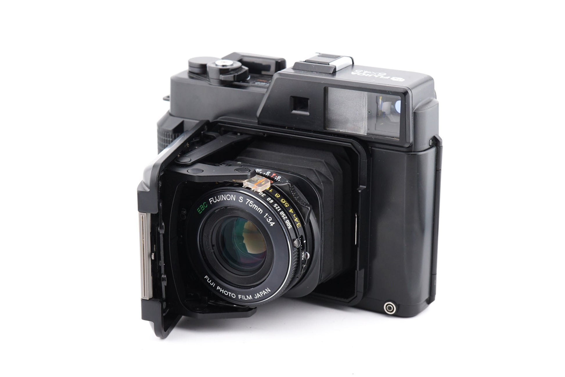 Manual focus 120 rangefinder camera released by Fujica. This camera takes 15 6x4.5cm images per roll of 120 film. The shutter is mechanical, only the light meter requires a battery. Users should remember to set the focus to infinity and cock the shutter before closing the door, otherwise there is risk of damaging the shutter and meter mechanisms. Plastic and metal body available in black.