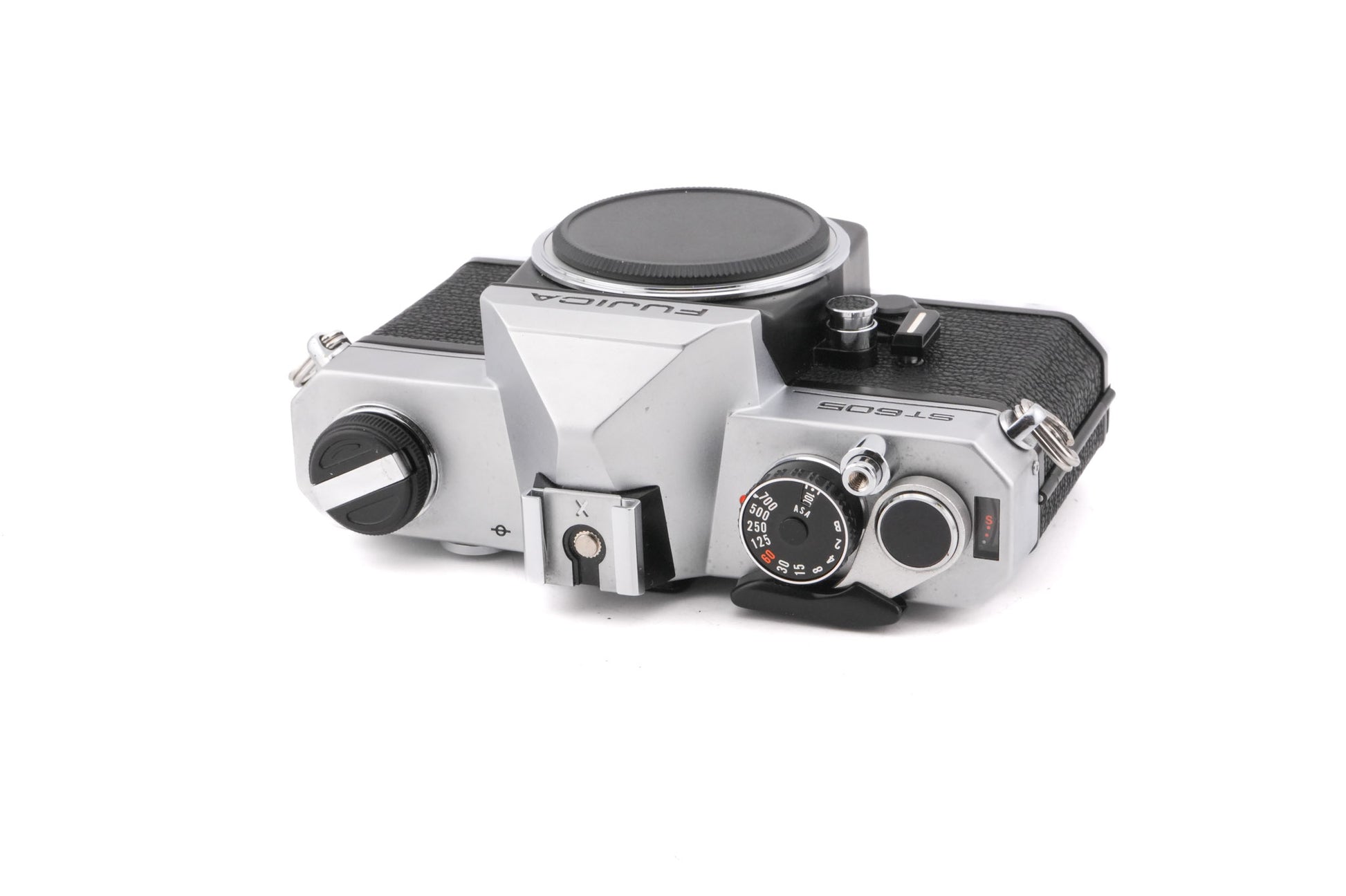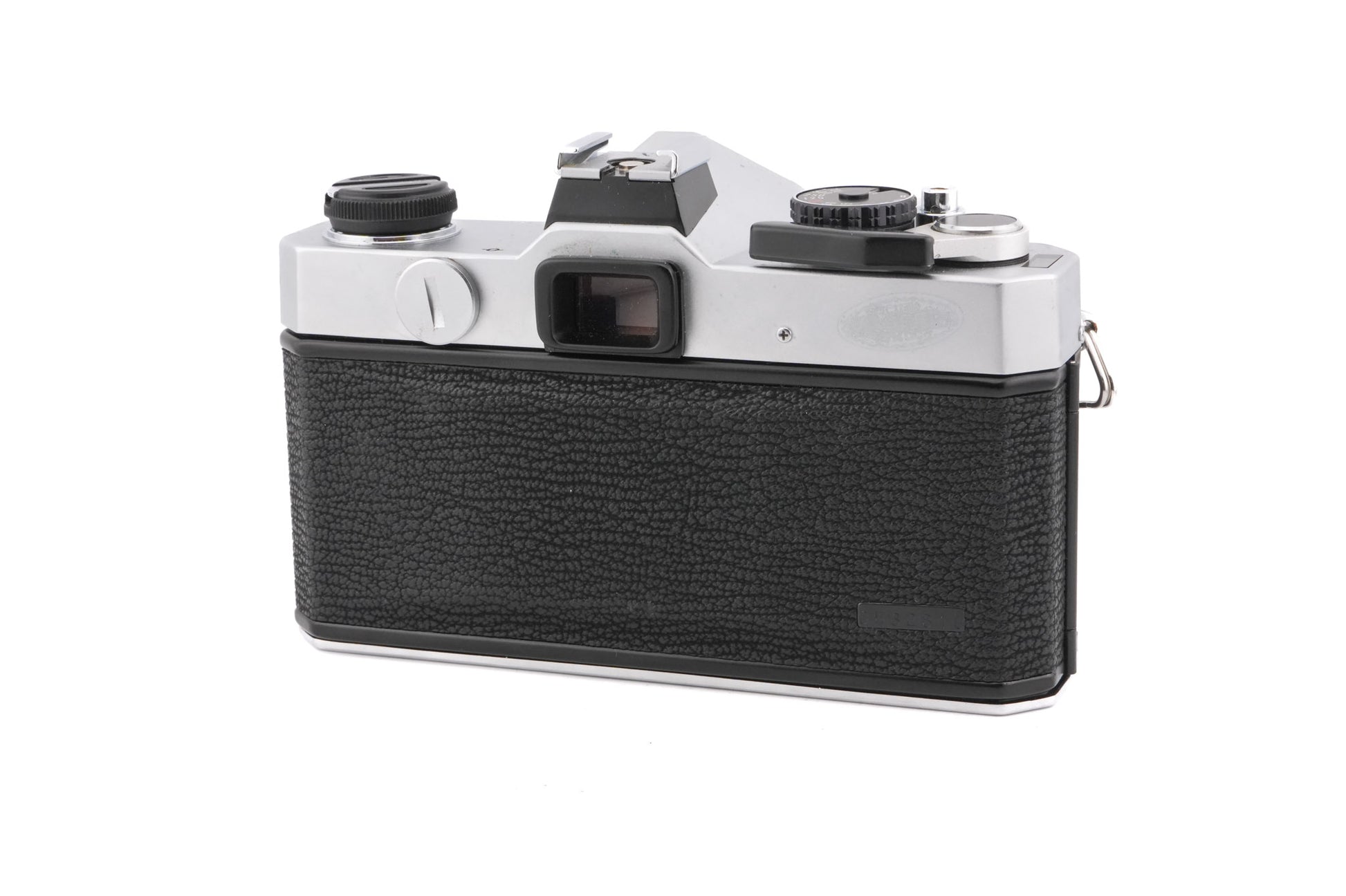 Manual focus M42 screw mount 35mm SLR camera introduced in 1976 by Fujica. The camera features a self-timer and a light meter. Metal body available in silver.
