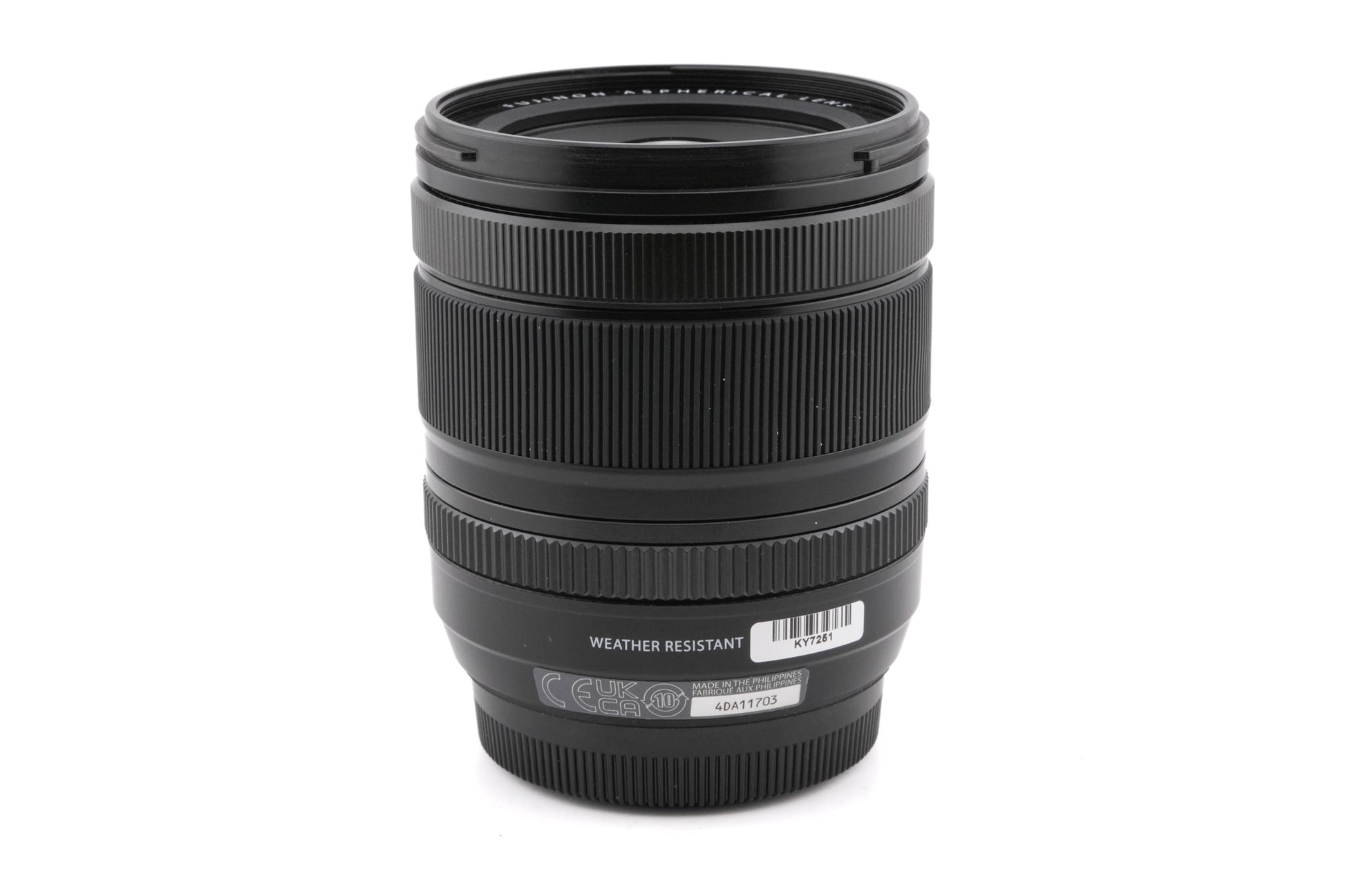 Autofocus wide-to-telephoto zoom lens made for X-mount digital mirrorless cameras introduced by Fujifilm in 2024. It has a 24-76mm equivalent focal length on full-frame sensors. It uses 3 aspherical and 3 ED elements. The body is weather-sealed. Plastic & metal body available in black.