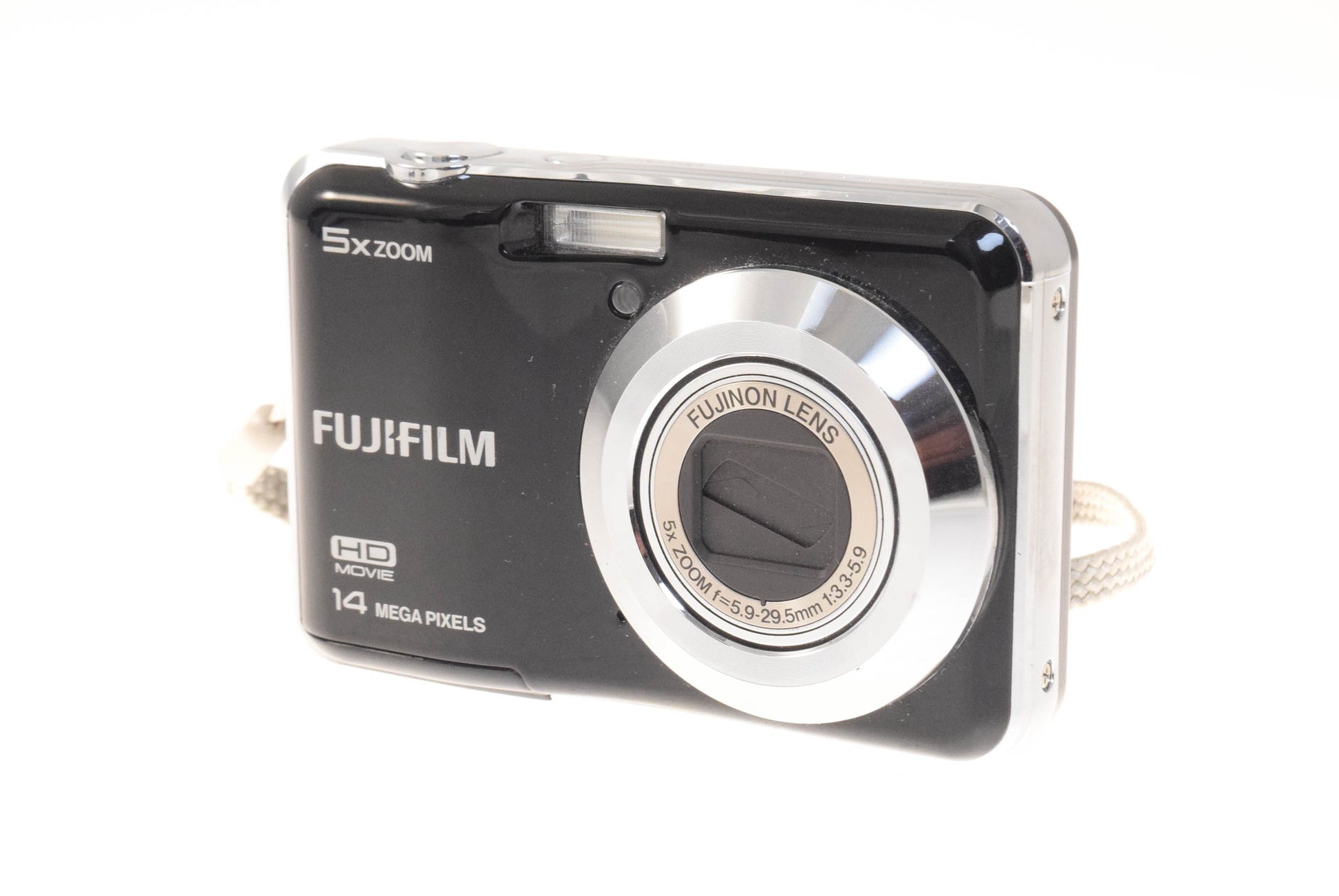 Compact digital point-and-shoot camera released by Fujifilm. Has a 33-165mm equivalent focal length. Has a 2.7" LCD screen and a built-in flash. Plastic body available in black.