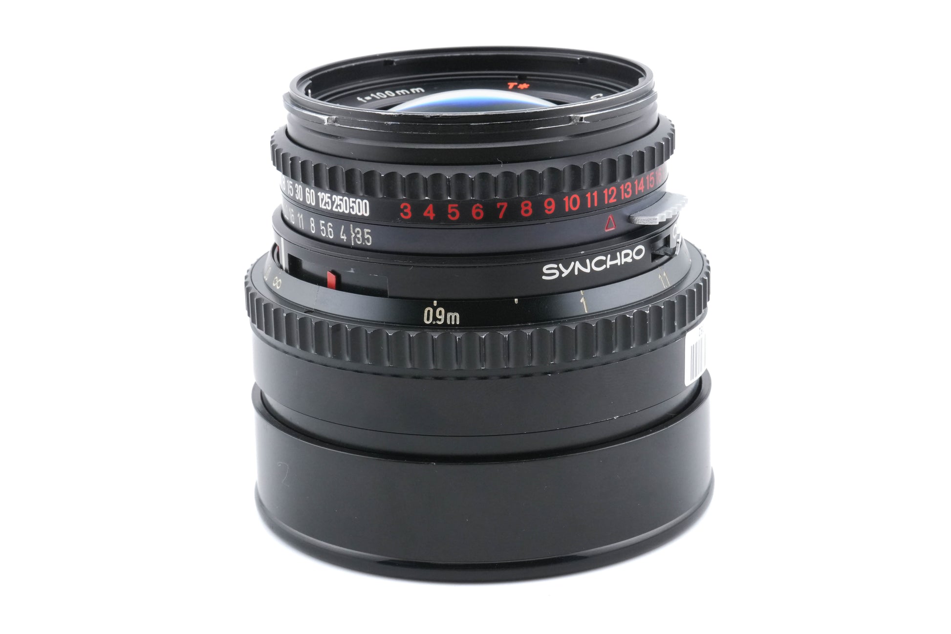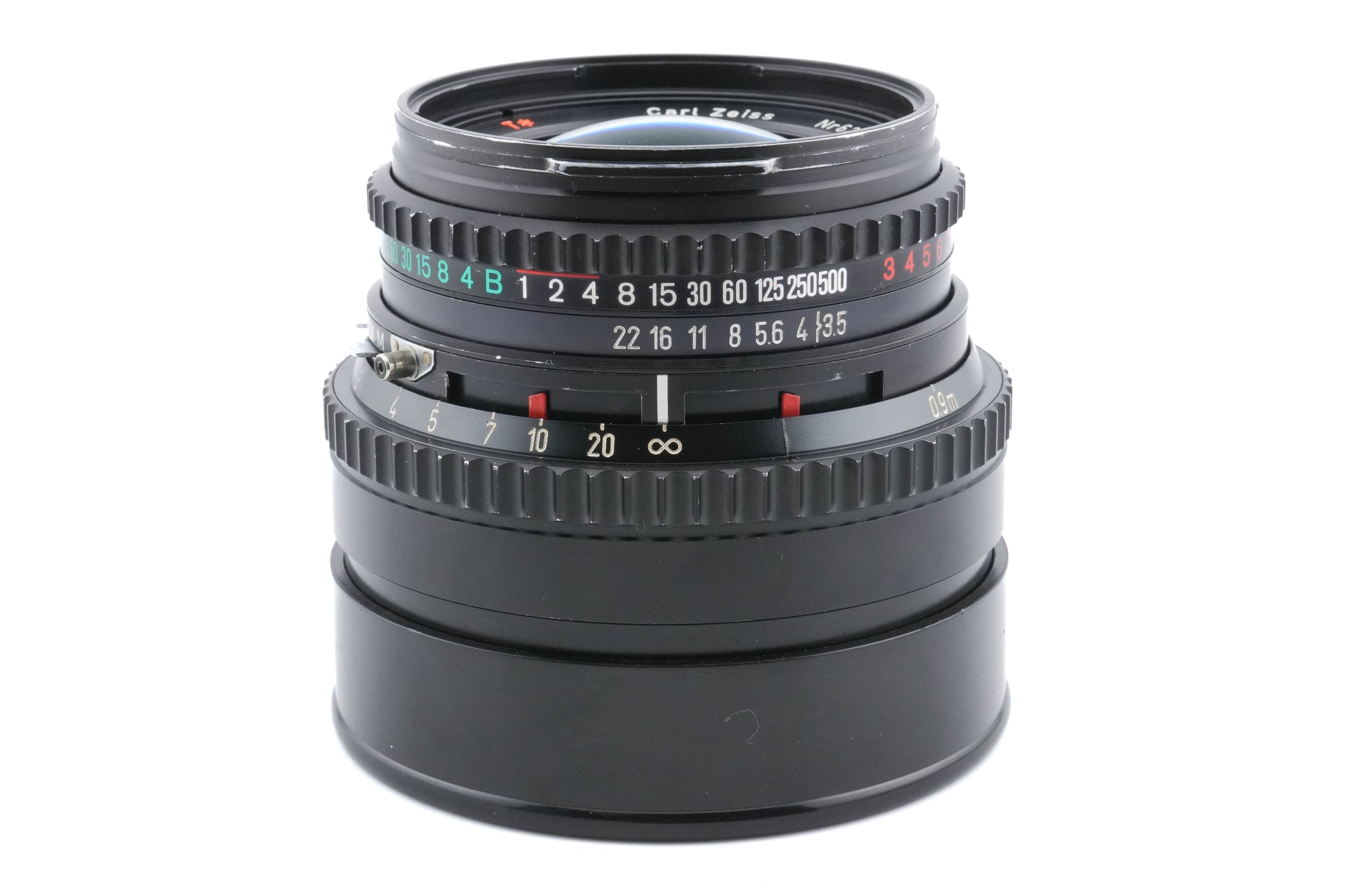 Manual focus normal lens made for V Series 120 SLRs cameras by Hasselblad starting in 1970. It gives the equivalent field of view to a 55mm lens on full frame/35mm. This version has Carl Zeiss' T* multicoatings. Metal body available in black.