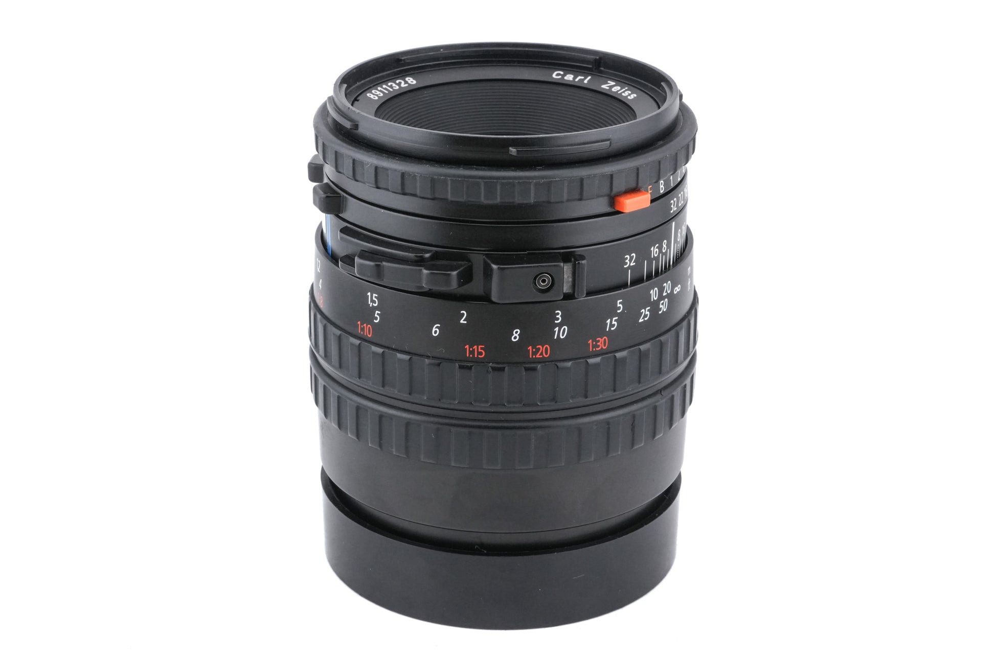Manual focus telephoto macro lens made for V series 120 SLR cameras by Hasselblad. It gives the equivalent field of view to a 66mm lens on full frame/35mm. This lens has electronic contacts for communicating data to 2000 series focal plane cameras. Metal and plastic body available in black.