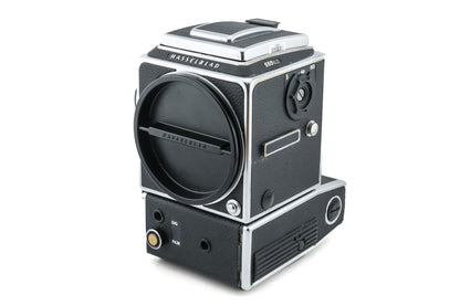Manual focus V series 120 SLR released by Hasselblad in 1998. It has special contacts for communicating with digital backs and has a through-the-lens (TTL) light meter for flash photography.