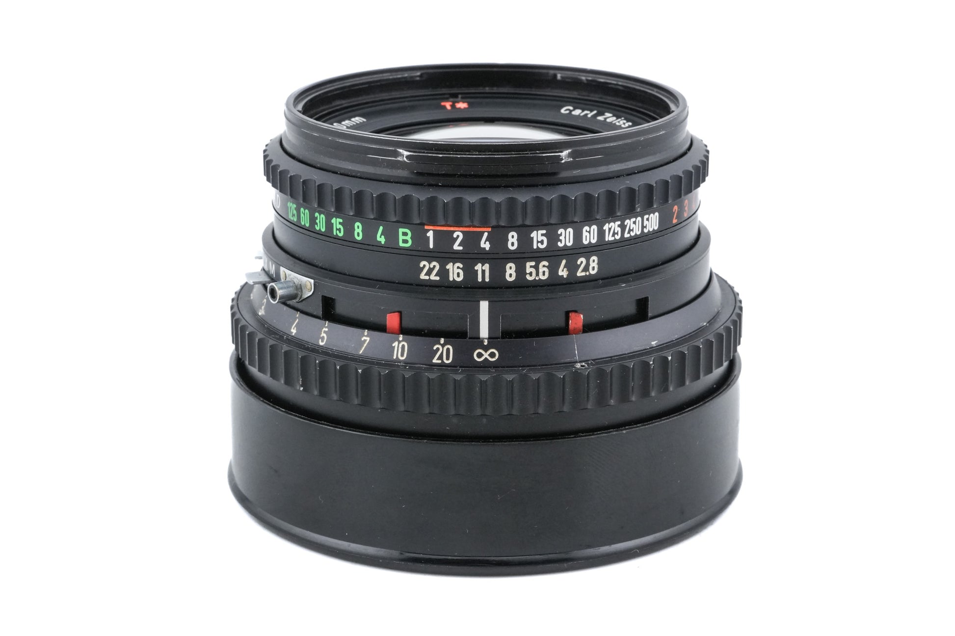 Manual focus normal lens made for V-system 120 SLR cameras introduced by Hasselblad and manufactured by Carl Zeiss. This is the second "C"-version, which came with a black lens barrel and new T* coatings. Metal body available in black (and a few thousand in silver).