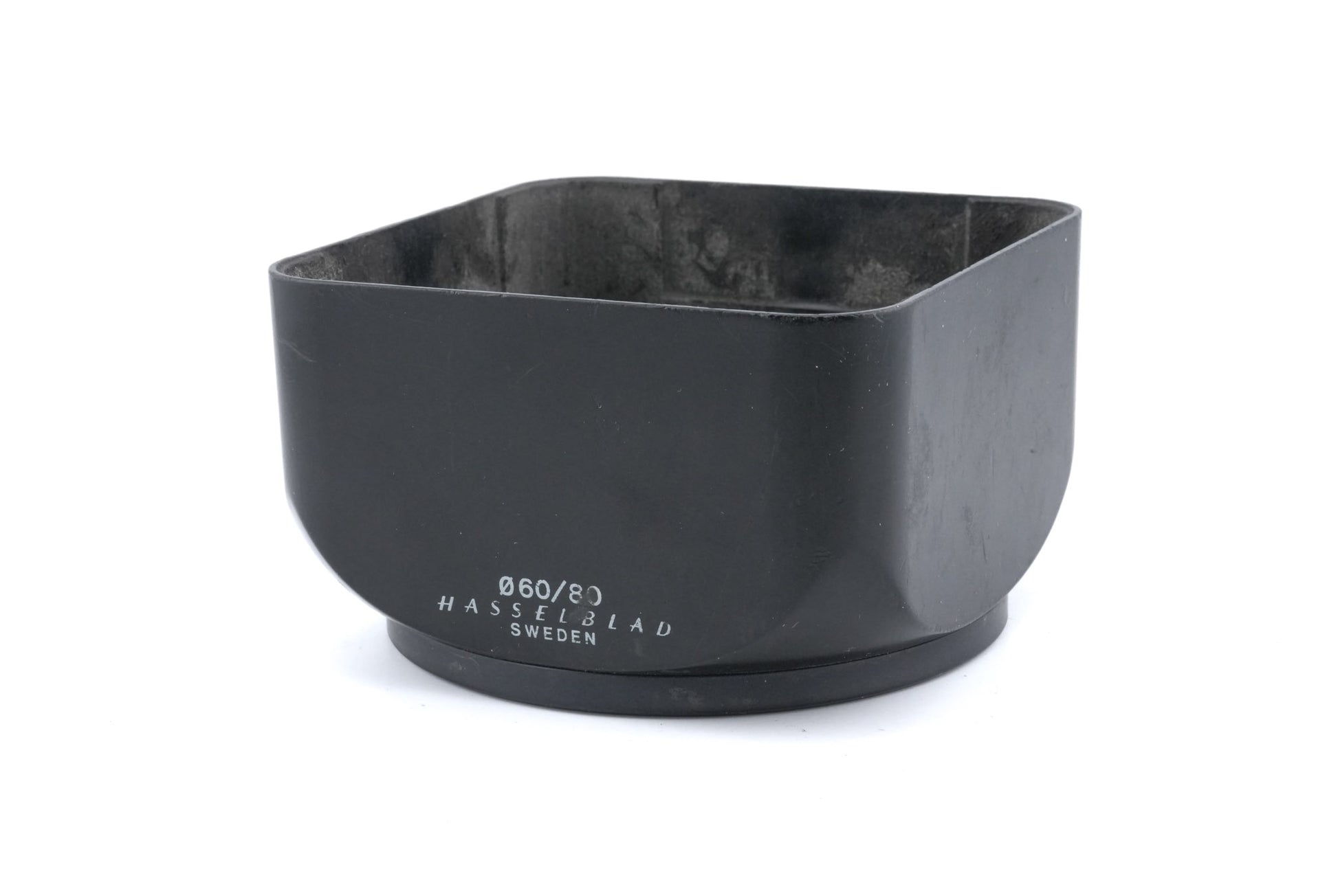Lens hood made by Hasselblad for the 80mm CF and later version of the 80mm F lenses. It helps block unwanted light from hitting the lens. Plastic body available in black.