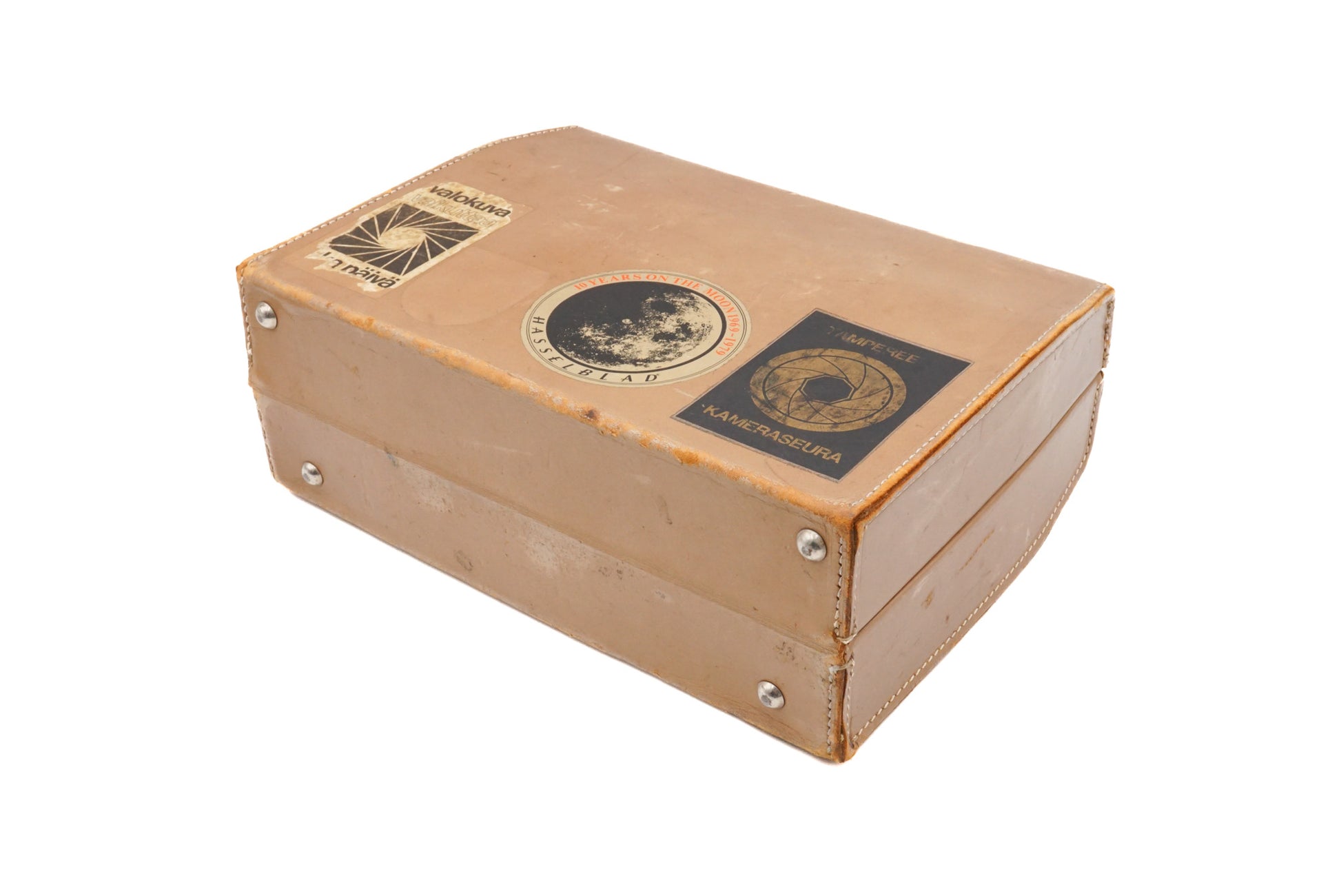 Leather briefcase-style bag made by Hasselblad in the late 1950s. Has compartments for lenses and bodies. Leather body available in brown.